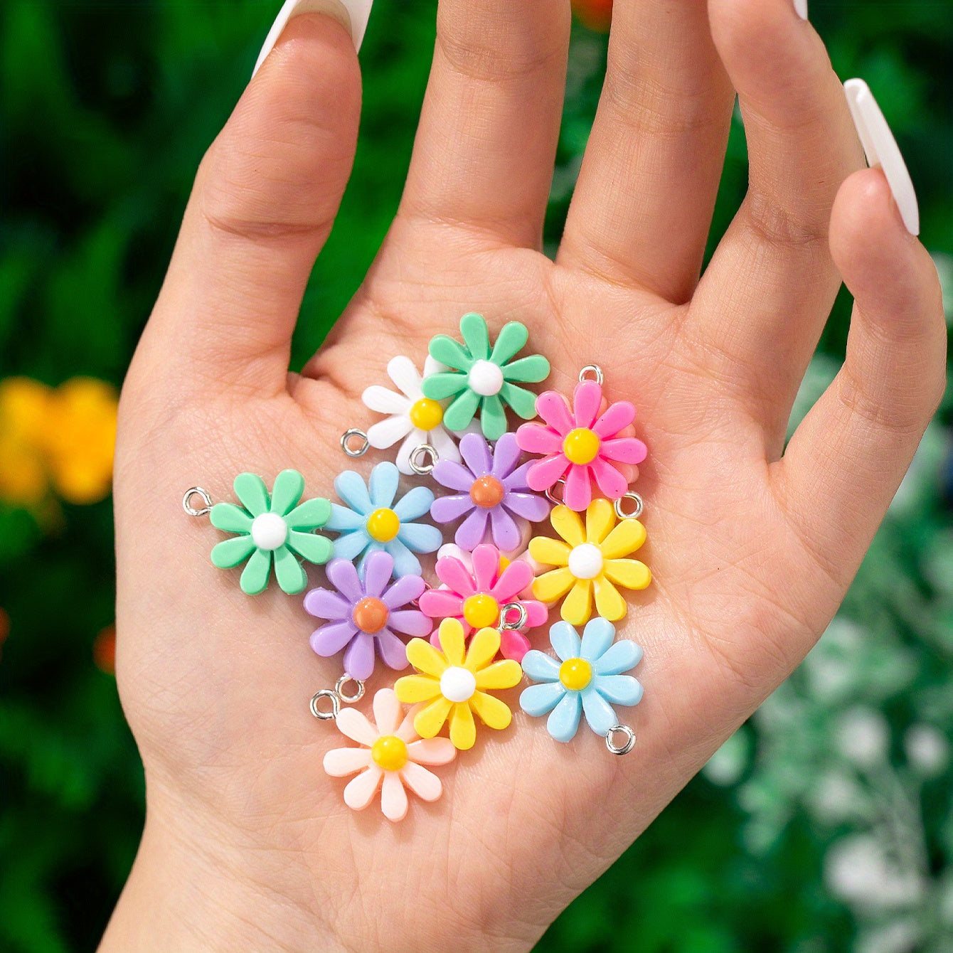 Add a pop of color to your jewelry creations with these vibrant resin pendants featuring small daisy and sunflower designs. Perfect for earrings, bag chains, bracelets, and more!