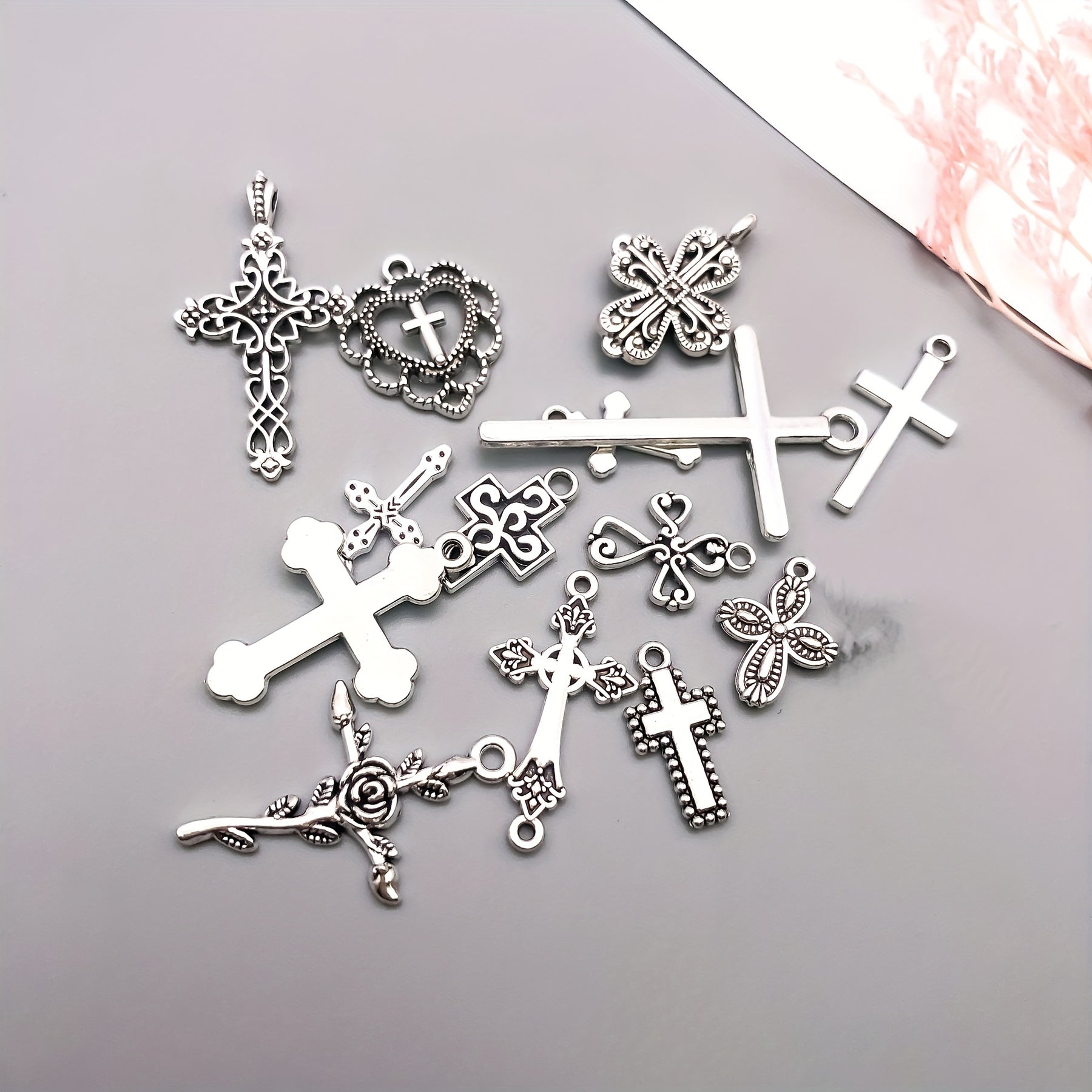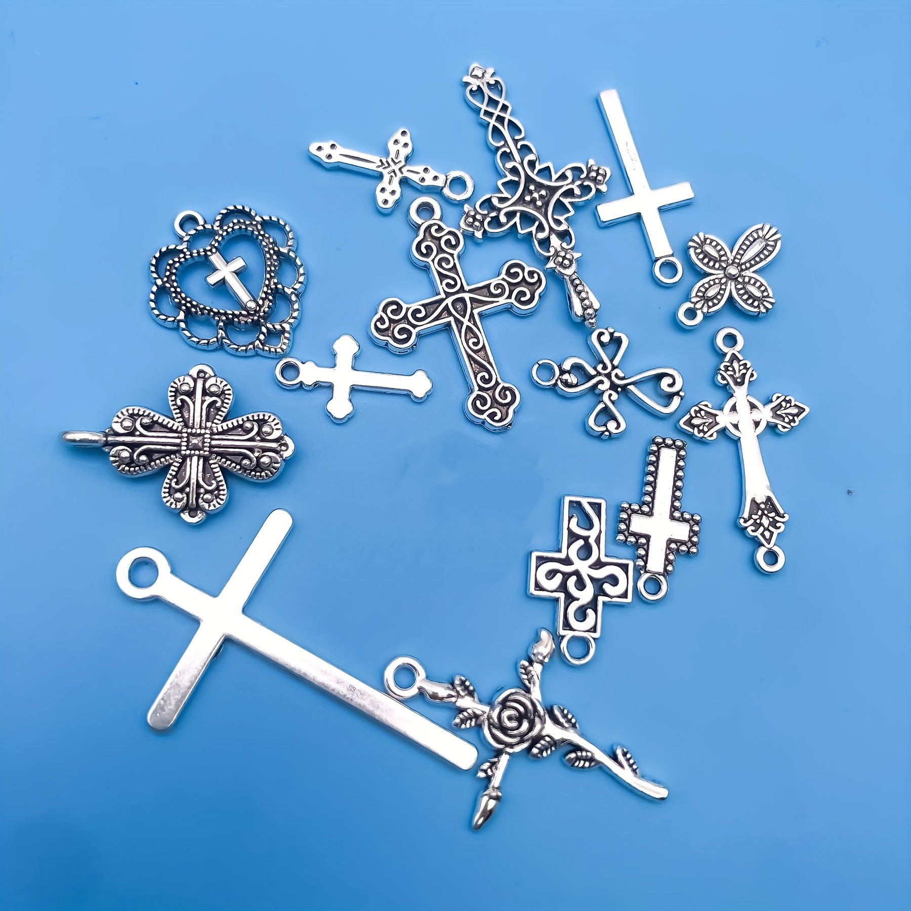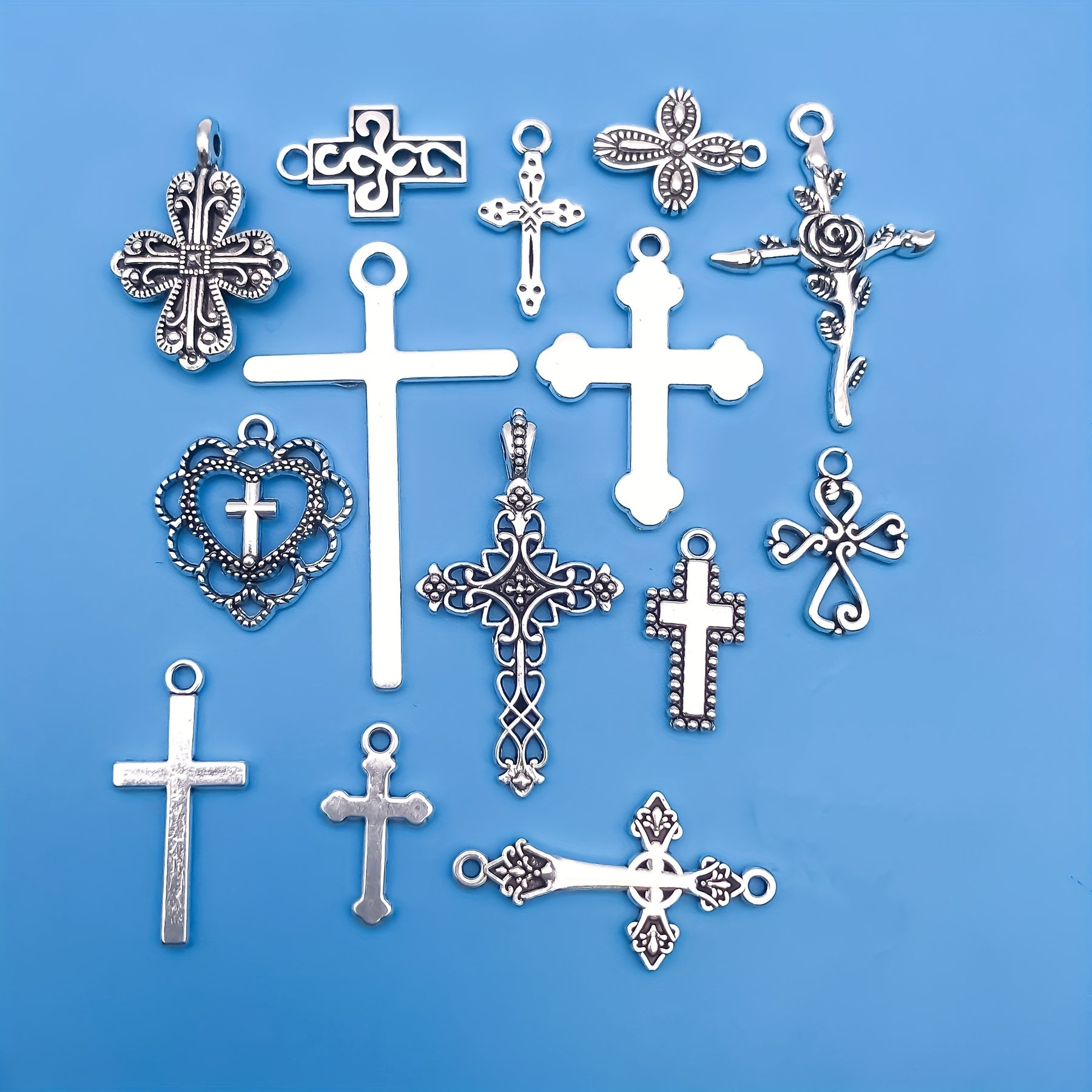 This set includes 14 assorted shaped cross pendants in a silvery finish, perfect for creating your own earrings, bracelets, necklaces, and other accessories.