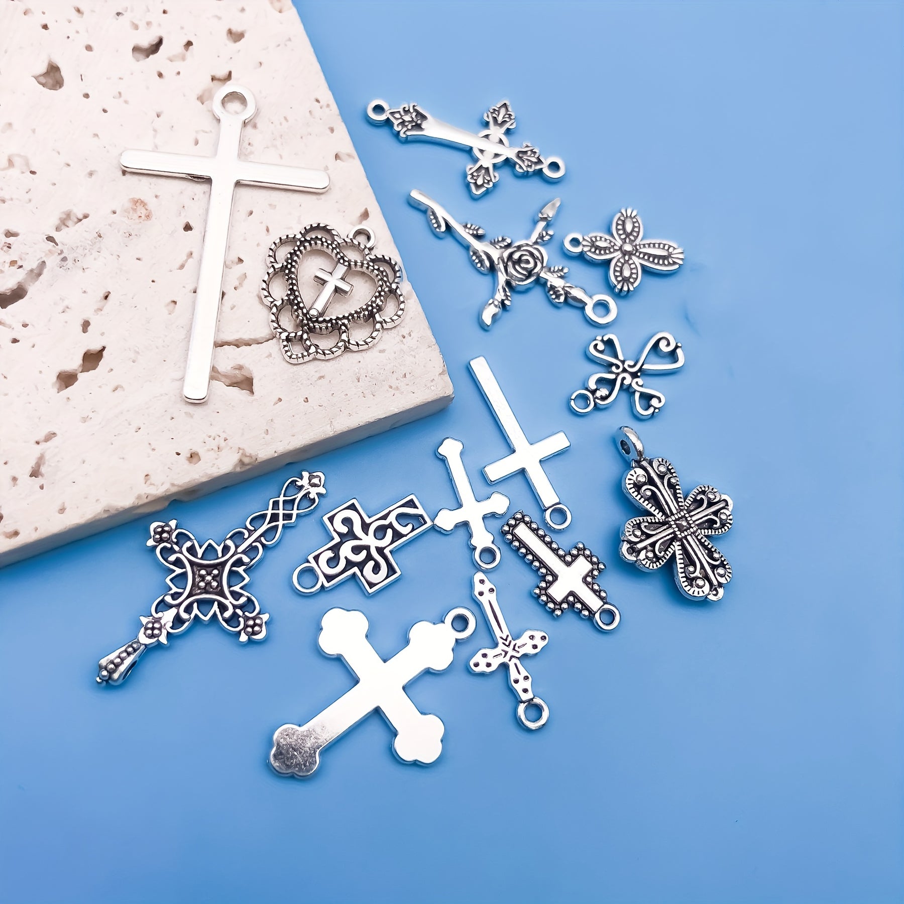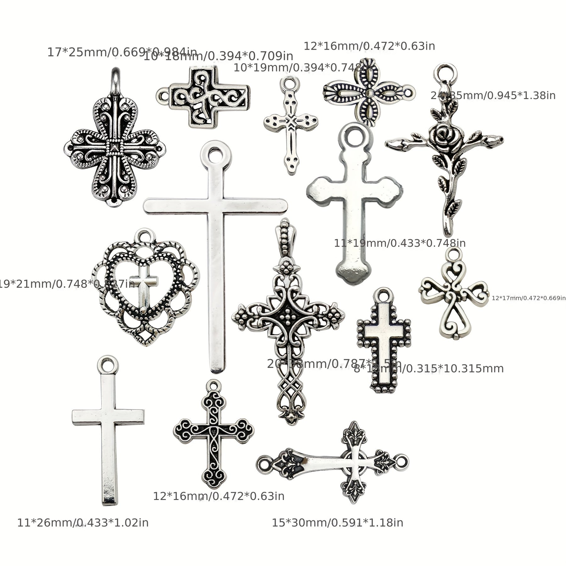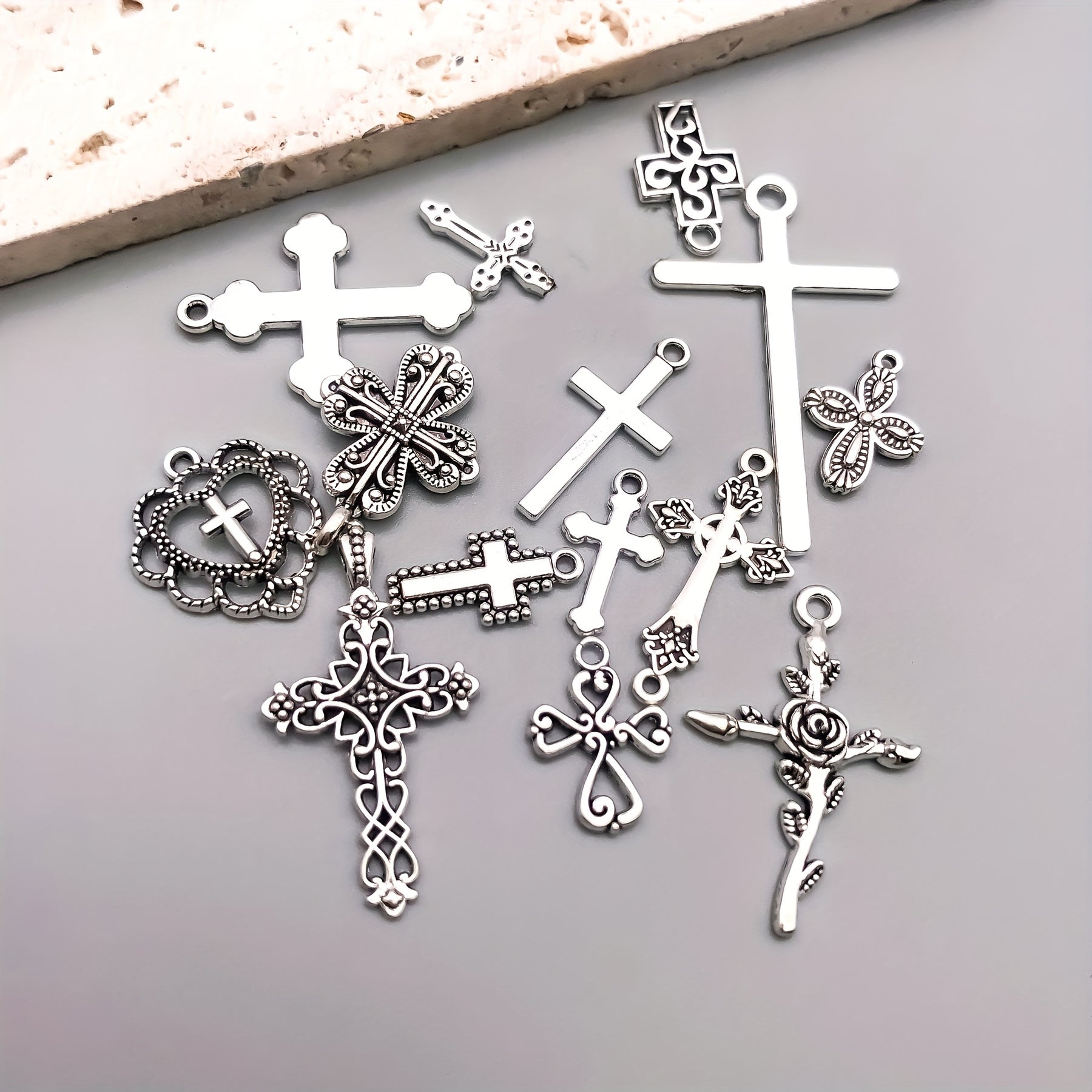 This set includes 14 assorted shaped cross pendants in a silvery finish, perfect for creating your own earrings, bracelets, necklaces, and other accessories.