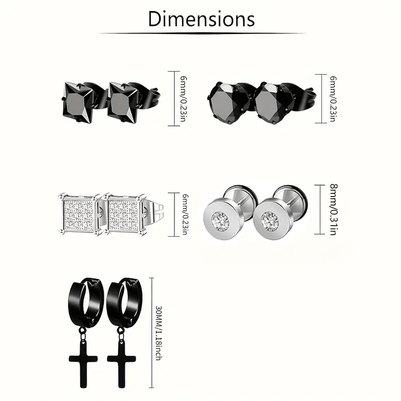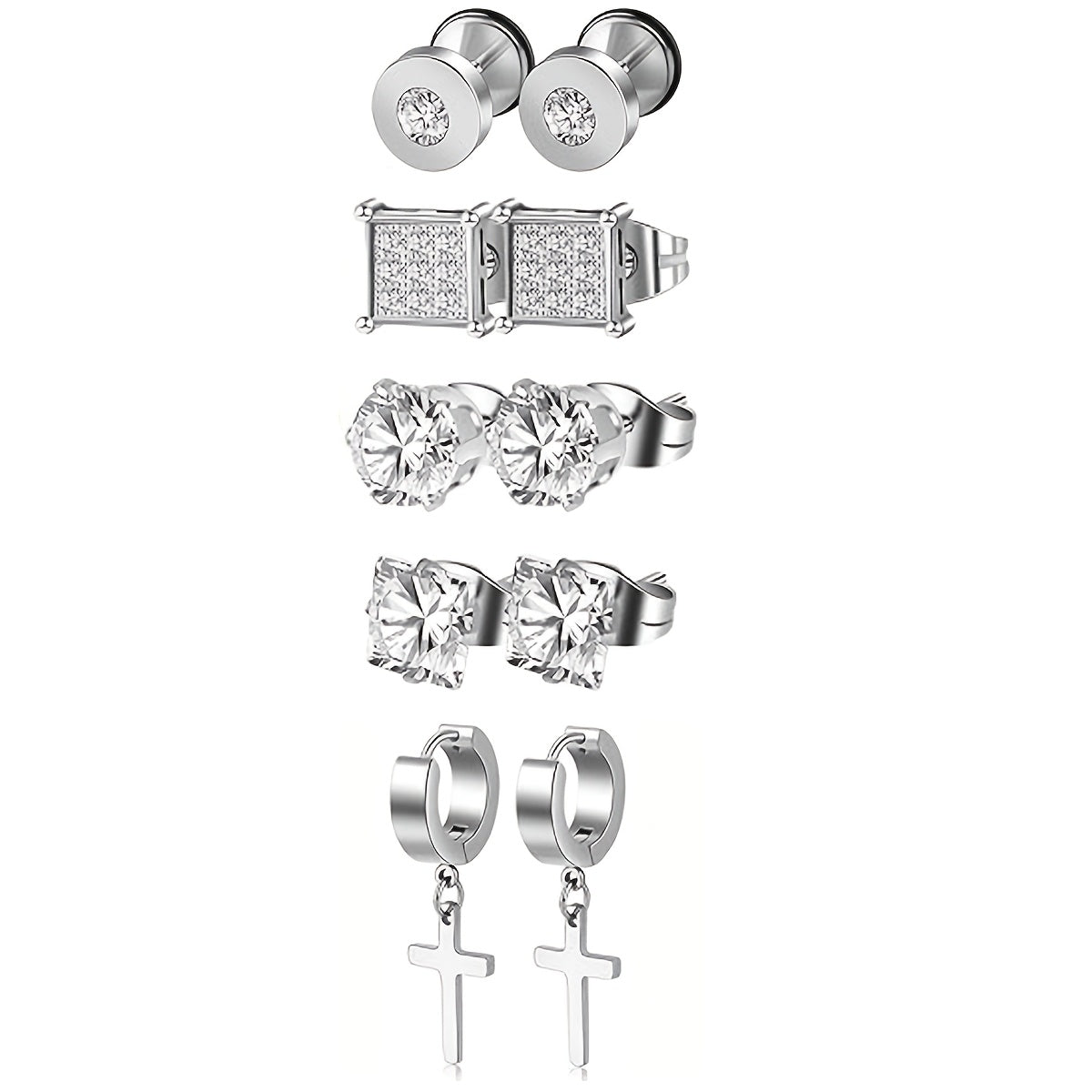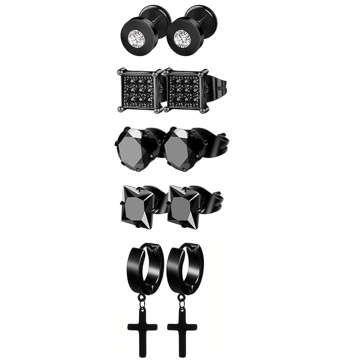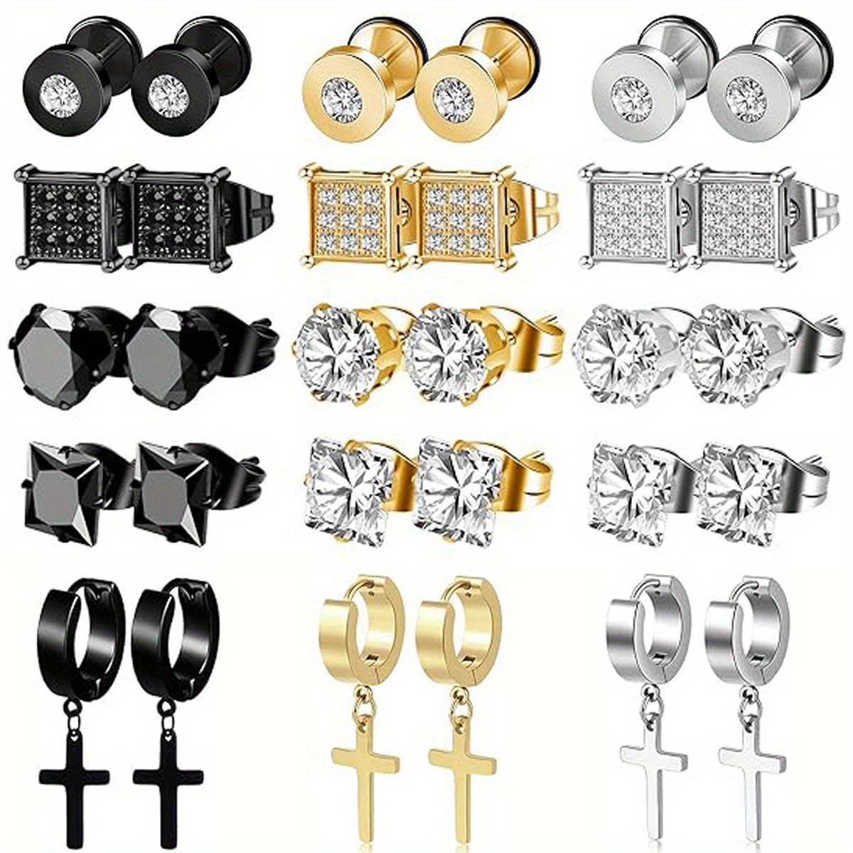 15 Pairs Stainless Steel CZ Stud Dangle Cross Earrings Set for Men and Women