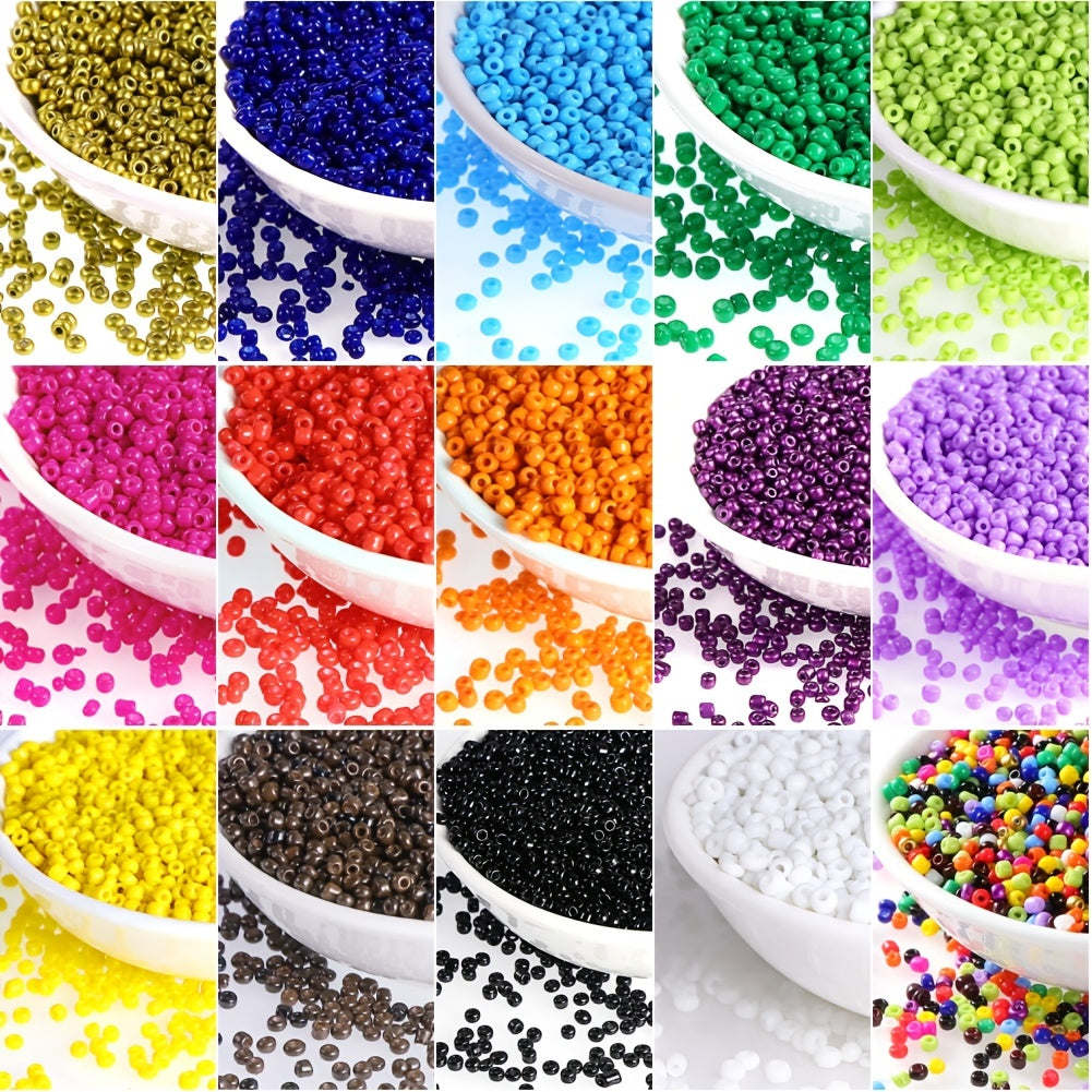 A 15g bag of glass rice beads in sizes 2mm, 3mm, and 4mm for jewelry making and crafts.