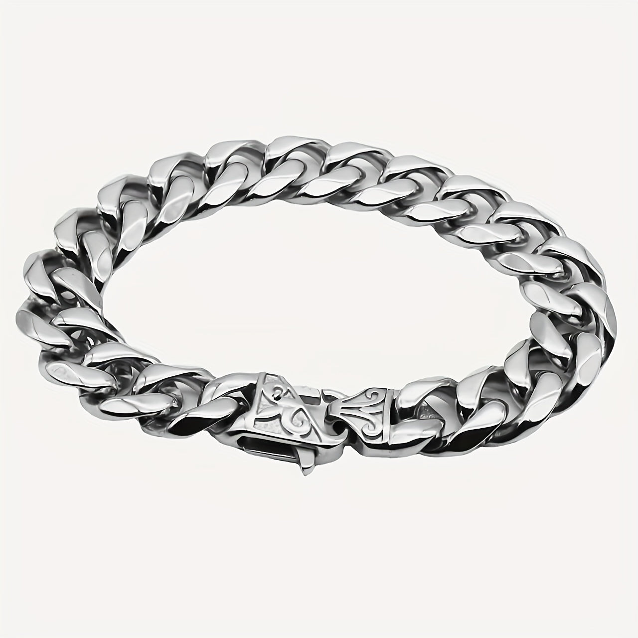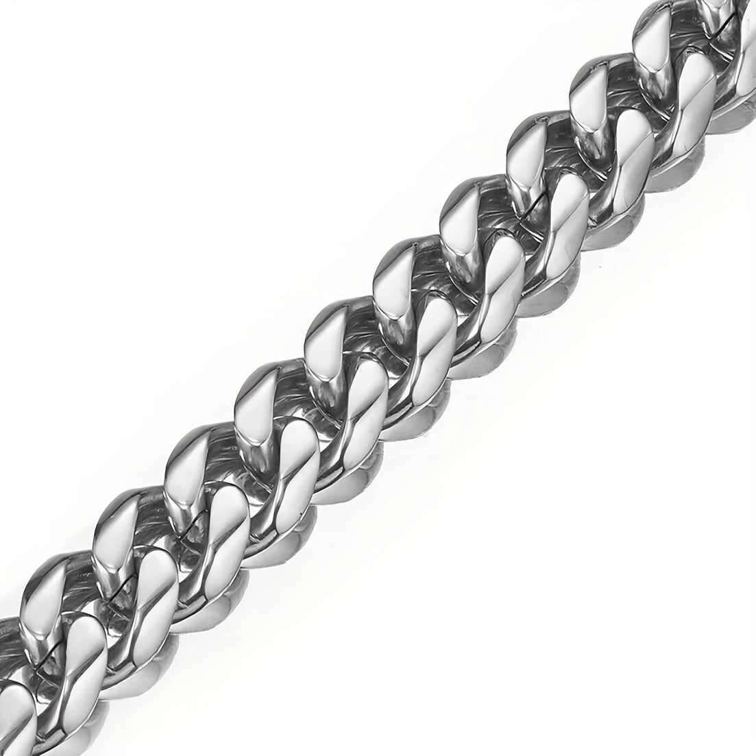 Add a touch of style to your outfit with this silvery Cuban chain bracelet made of durable 316L stainless steel.