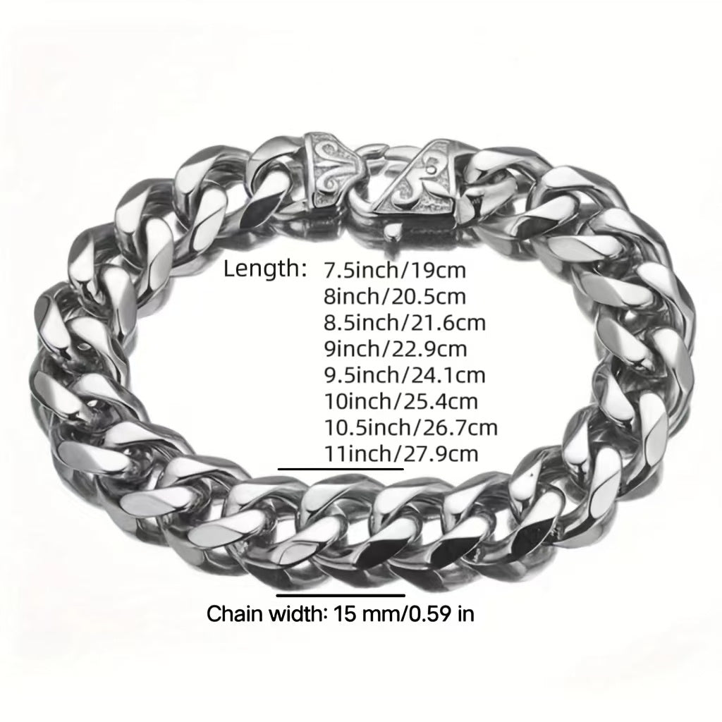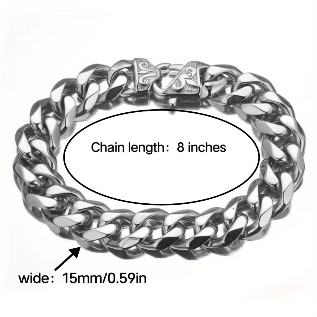 • 15mm wide Cuban chain bracelet for men