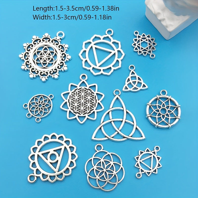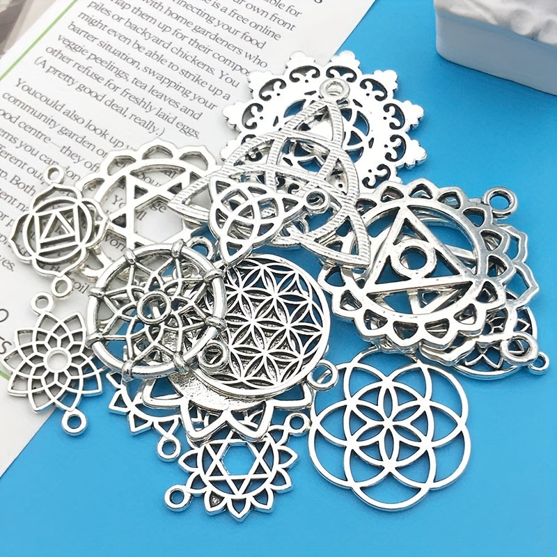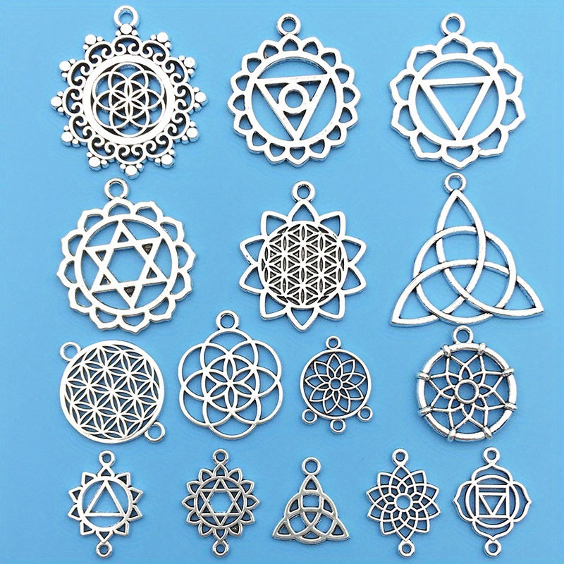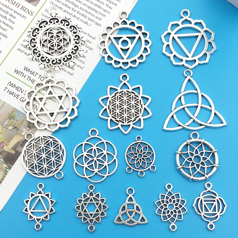 Enhance your jewelry making with this set of 15 silvery alloy hollow out pendants. Perfect for creating unique necklaces, bracelets, and earrings.