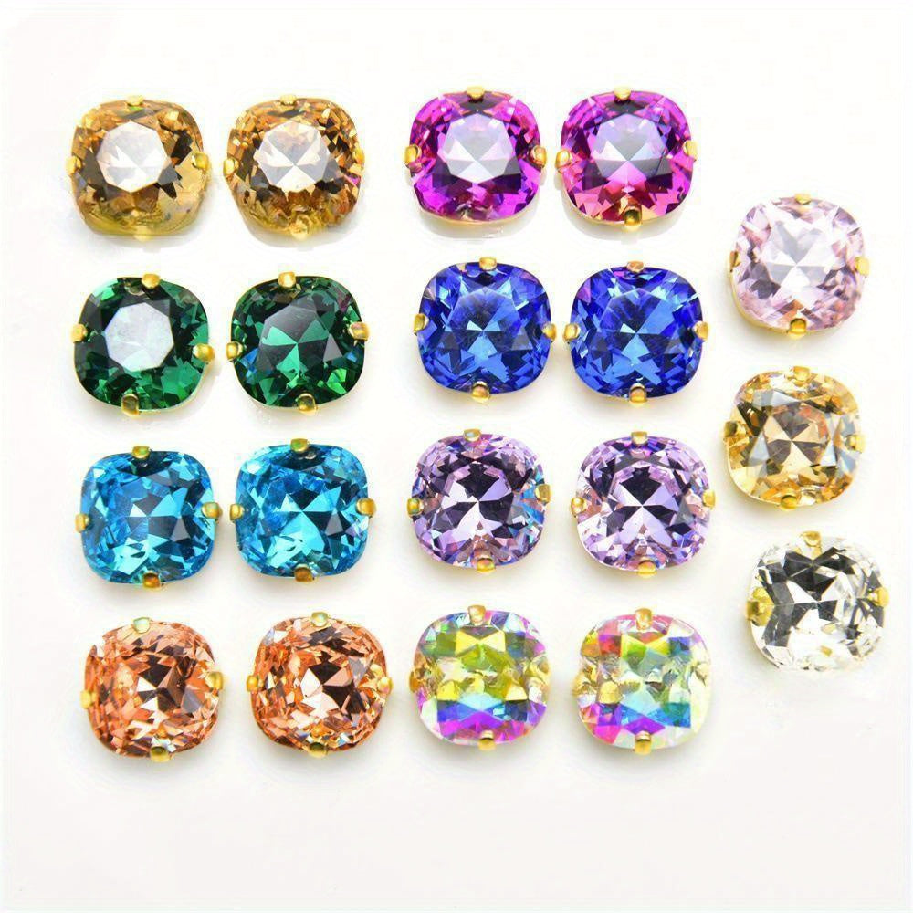 Add a touch of vibrant color to your clothing and jewelry projects with these 12mm square glass charms. Perfect for creating eye-catching designs.