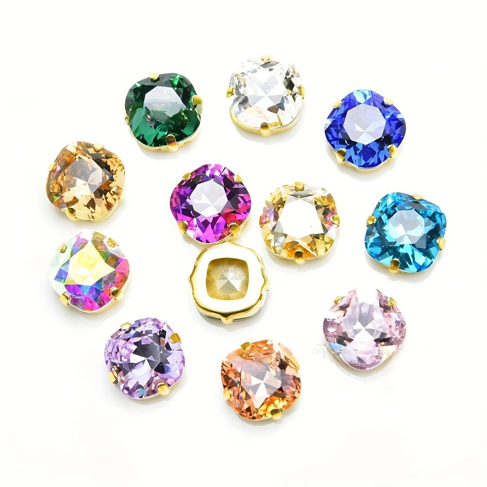 16pcs 12mm Square Glass Charms for Clothing Jewelry Making