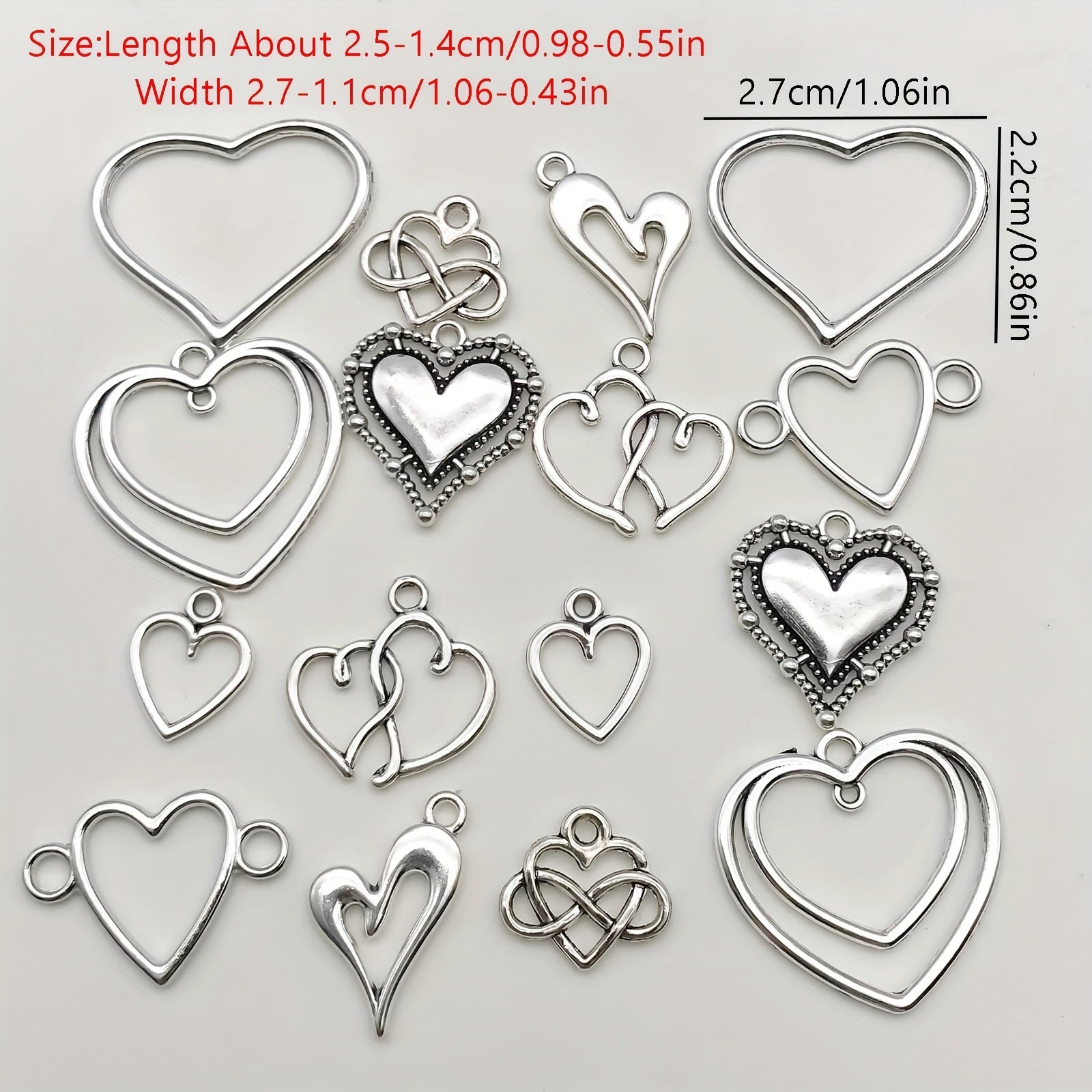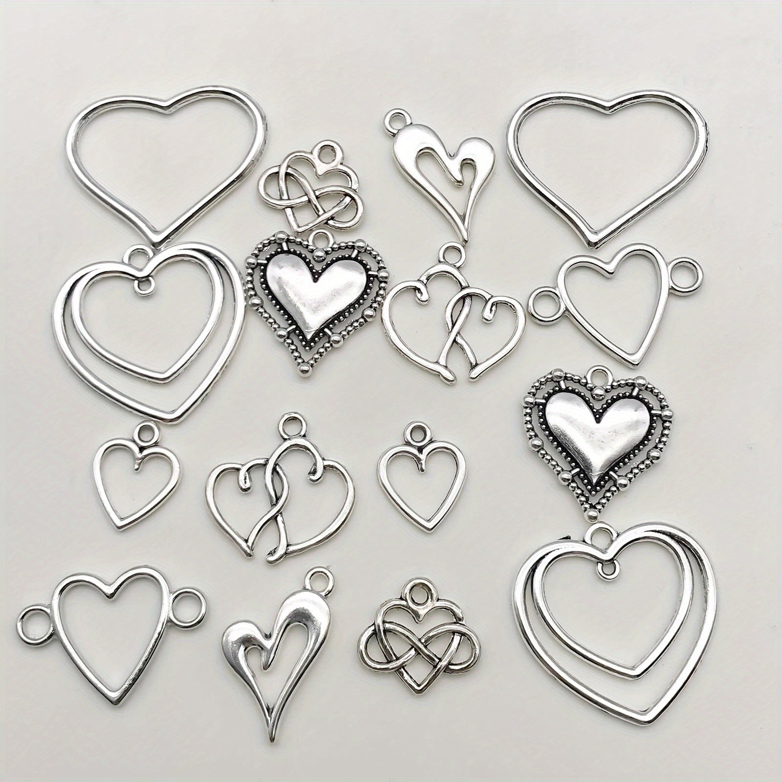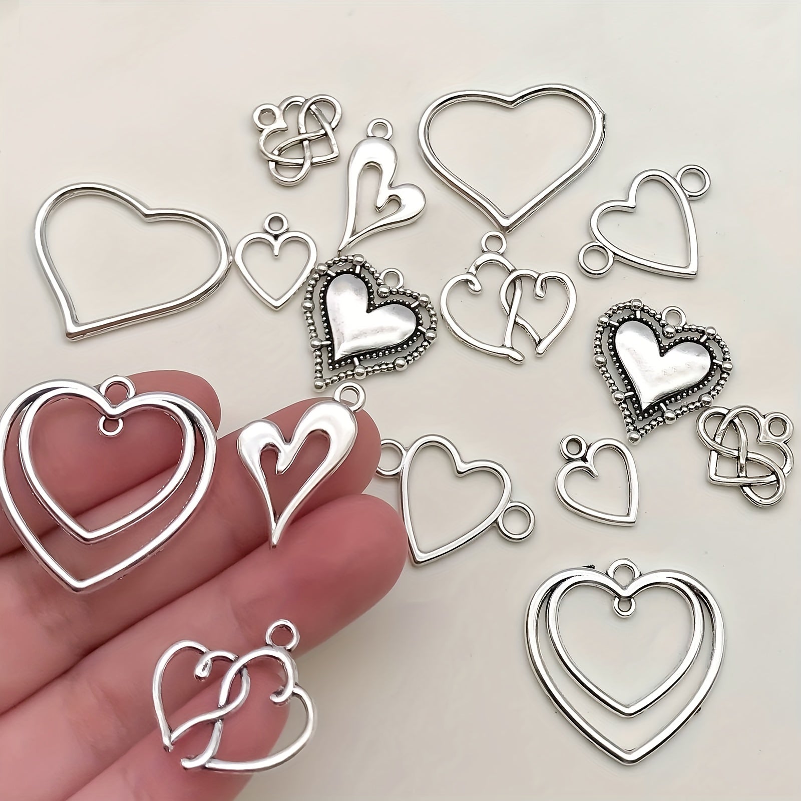 This set includes 16 beautiful antique silvery heart-shaped alloy pendants that can be used for making necklaces, earrings, bracelets, keychains, and bag chains. Add a touch of elegance to your DIY jewelry projects.