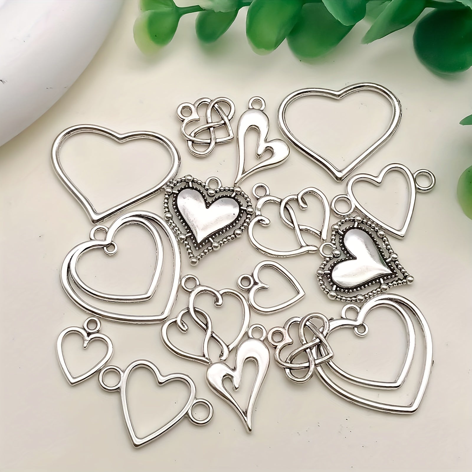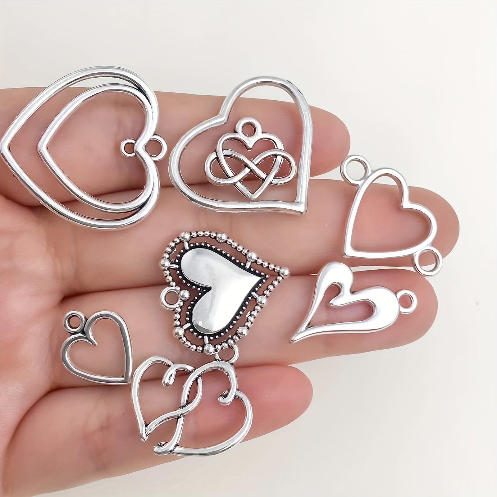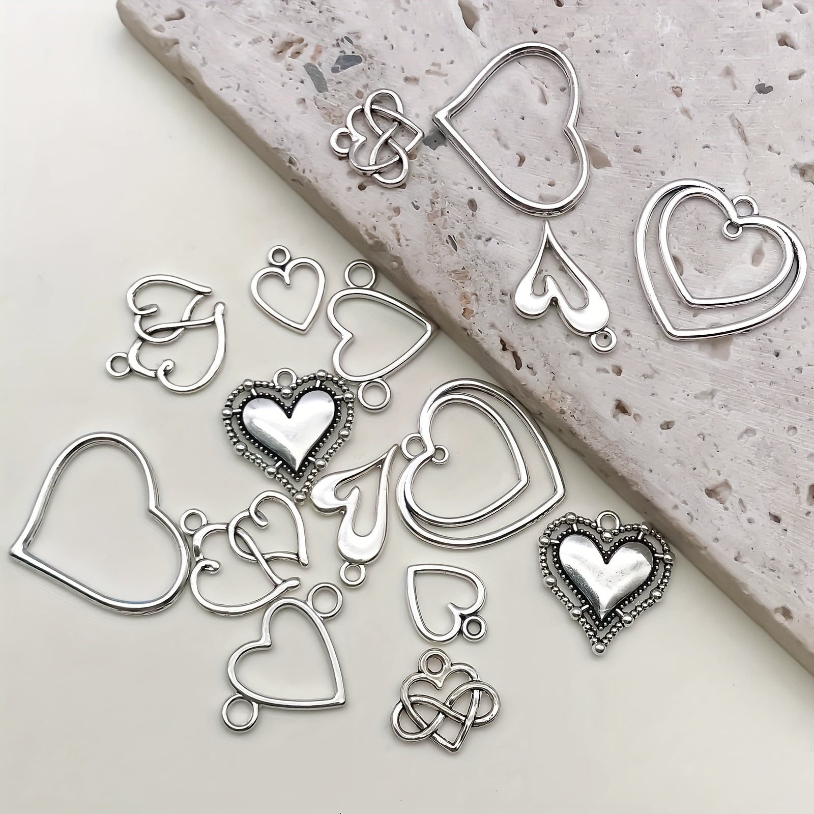 This set includes 16 beautiful antique silvery heart-shaped alloy pendants that can be used for making necklaces, earrings, bracelets, keychains, and bag chains. Add a touch of elegance to your DIY jewelry projects.