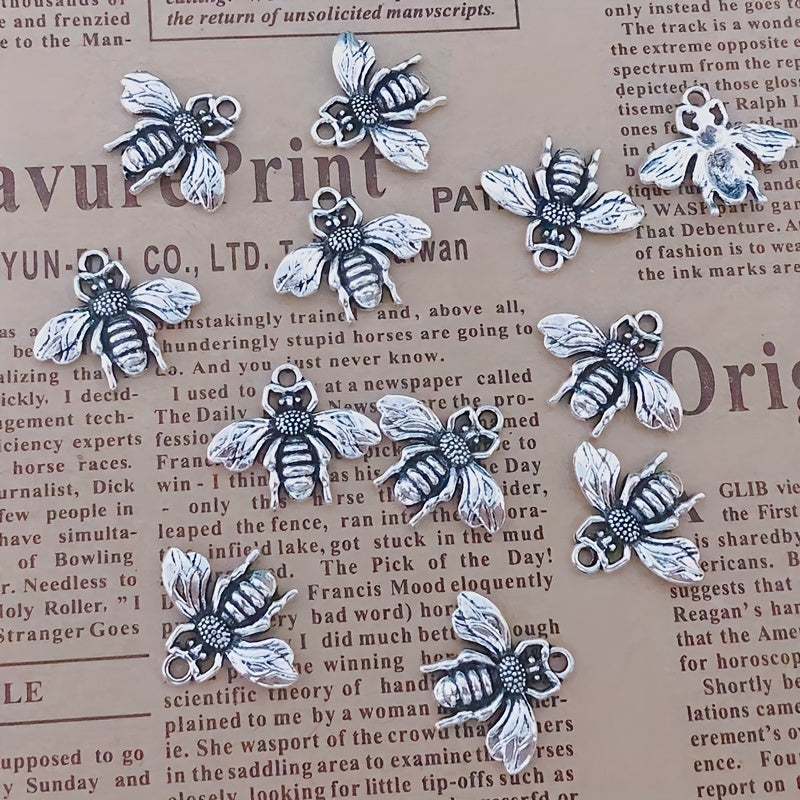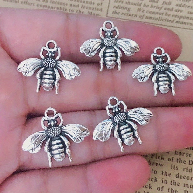 Add a touch of charm with these antique silver tone bee pendants. Perfect for DIY projects, bangles, and necklaces.