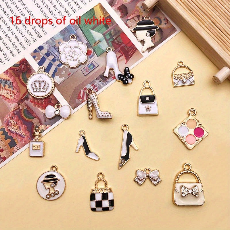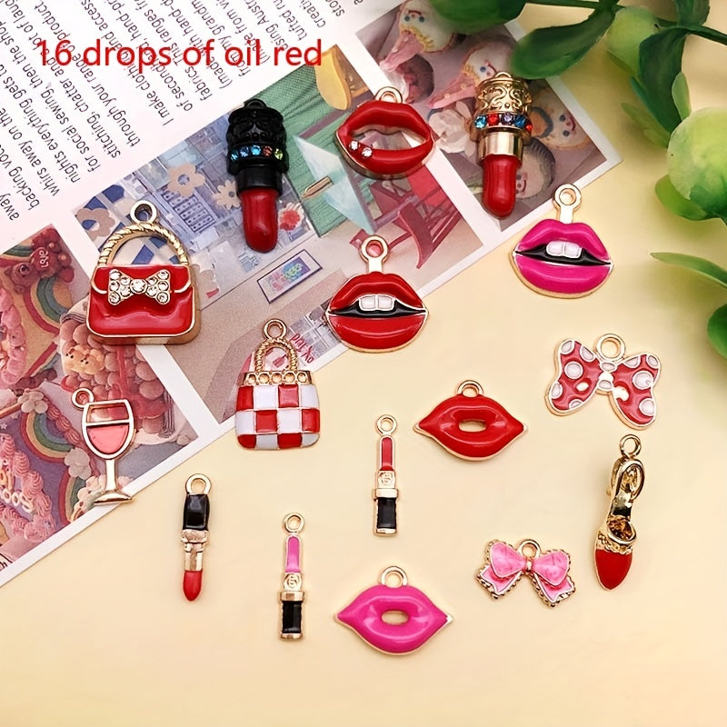 Explore your creative side with these 16pcs cartoon makeup cosmetics pendants, perfect for DIY necklace, bracelet, and other jewelry making projects. Use these fun accessories to create unique and personalized pieces that showcase your love for makeup and cosmetics.
