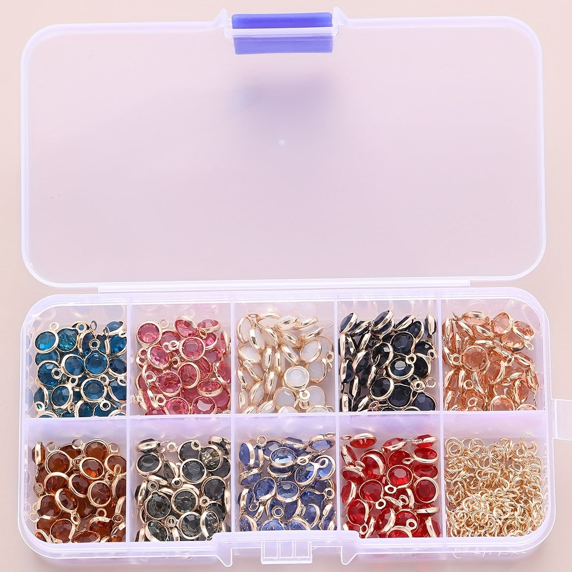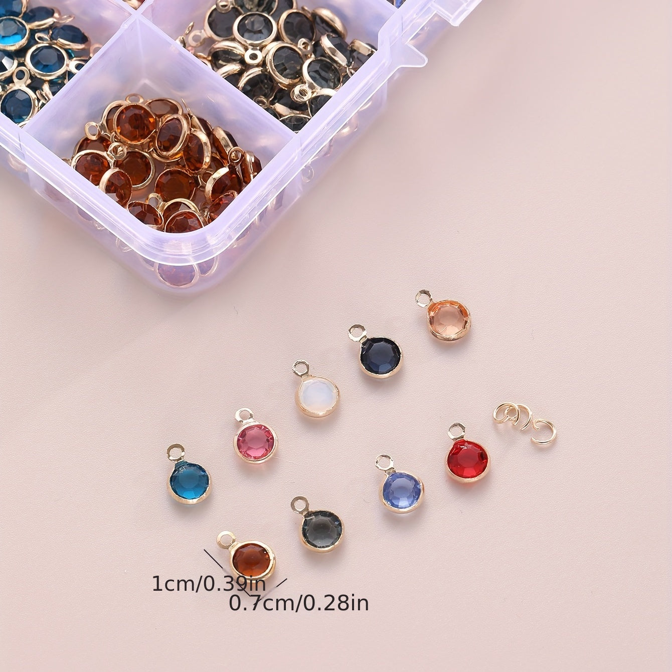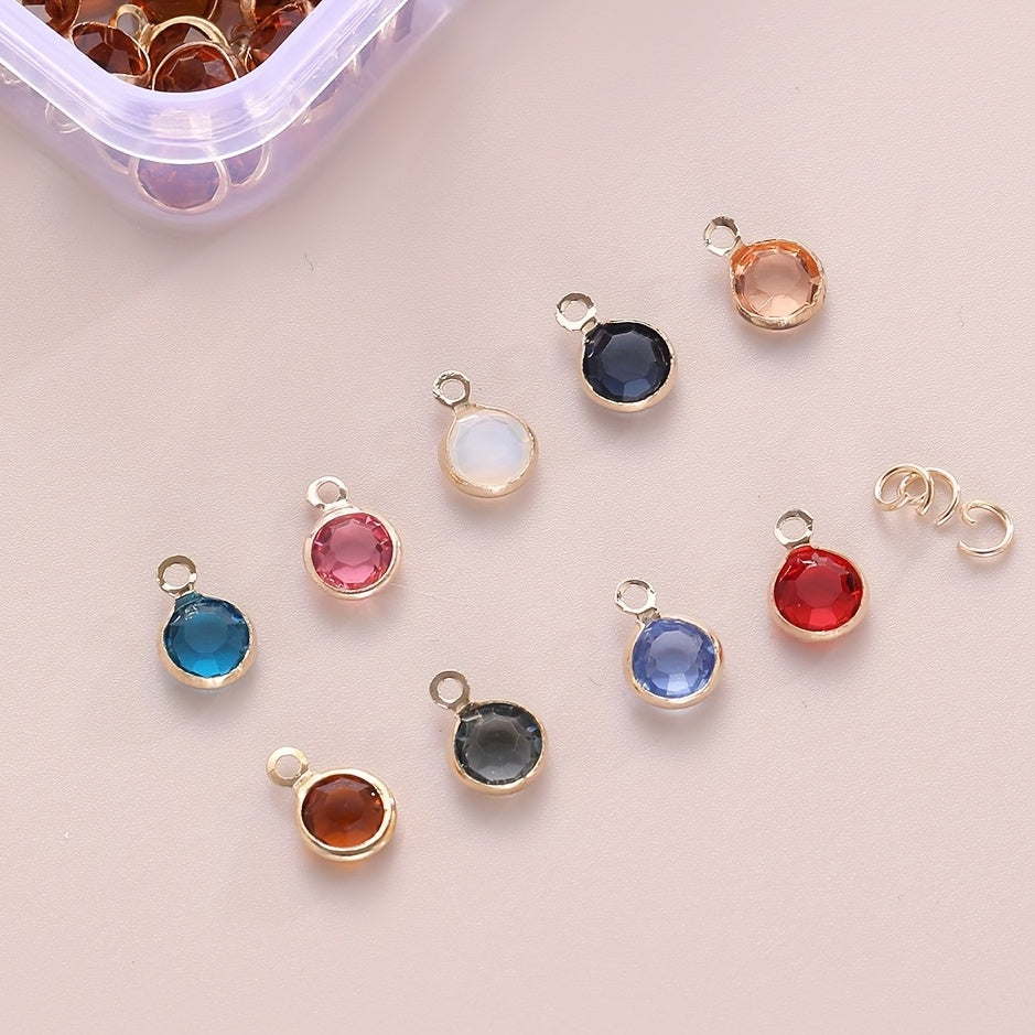 This set includes 180 glass pendants in 9 different colors and golden jump rings. Perfect for creating various jewelry pieces and matching outfits.