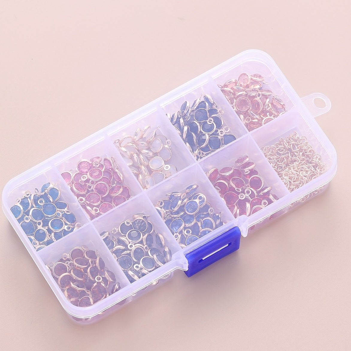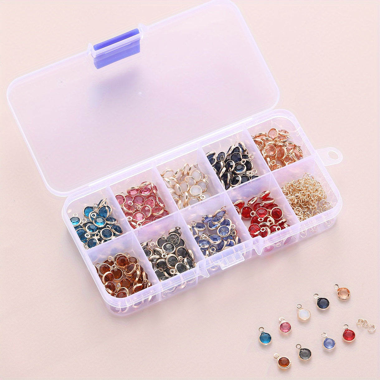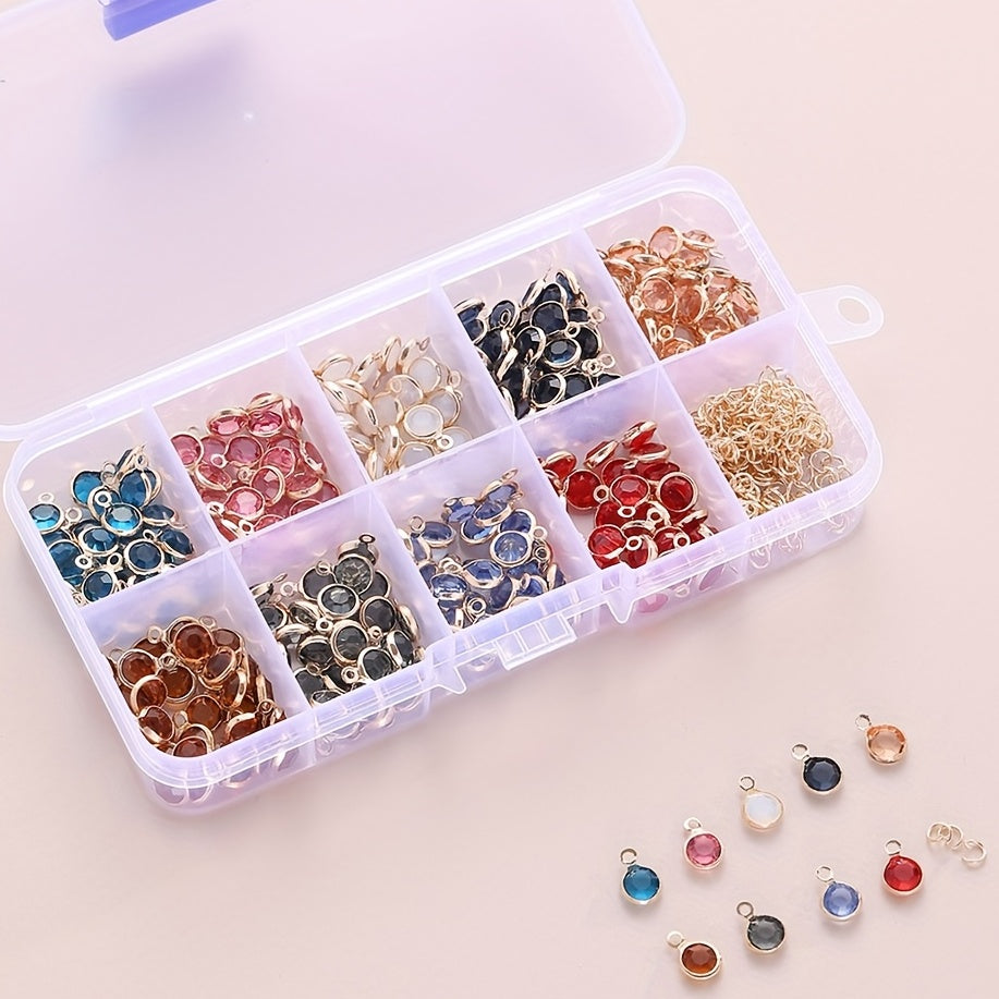This set includes 180 glass pendants in 9 different colors and golden jump rings. Perfect for creating various jewelry pieces and matching outfits.