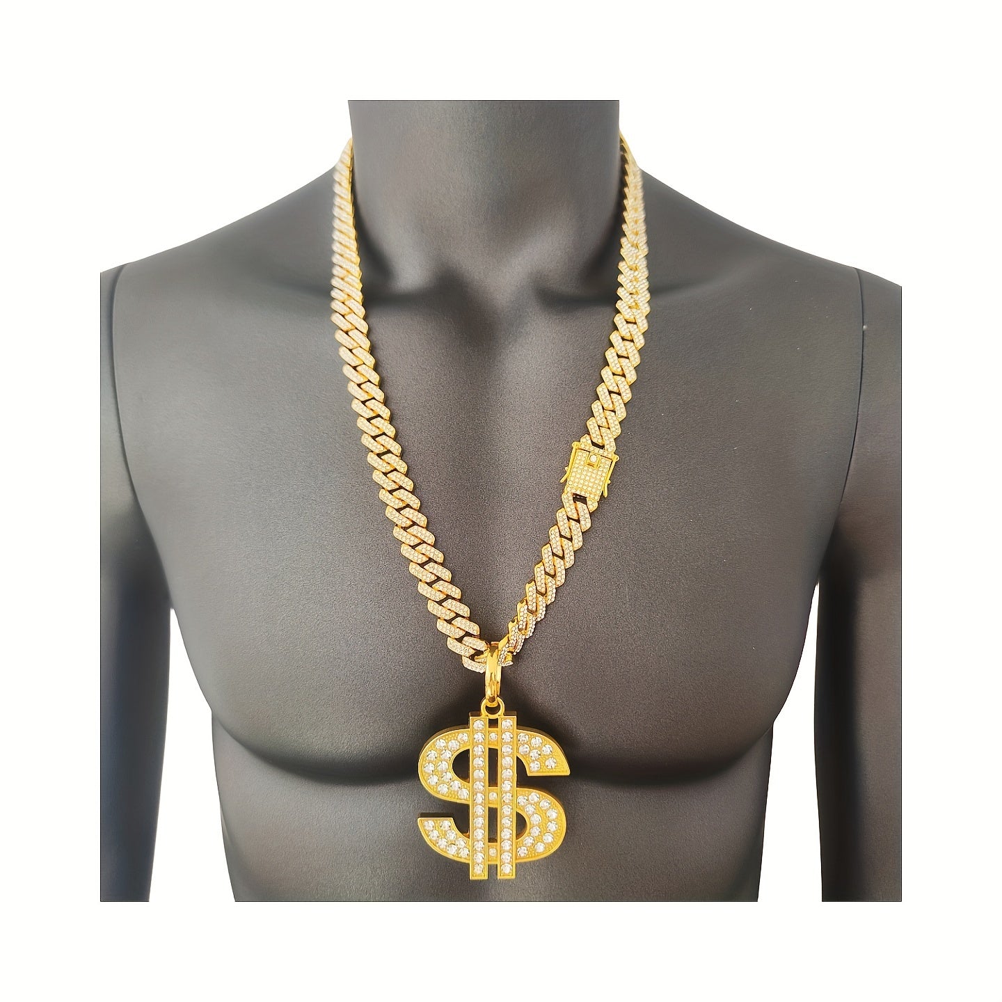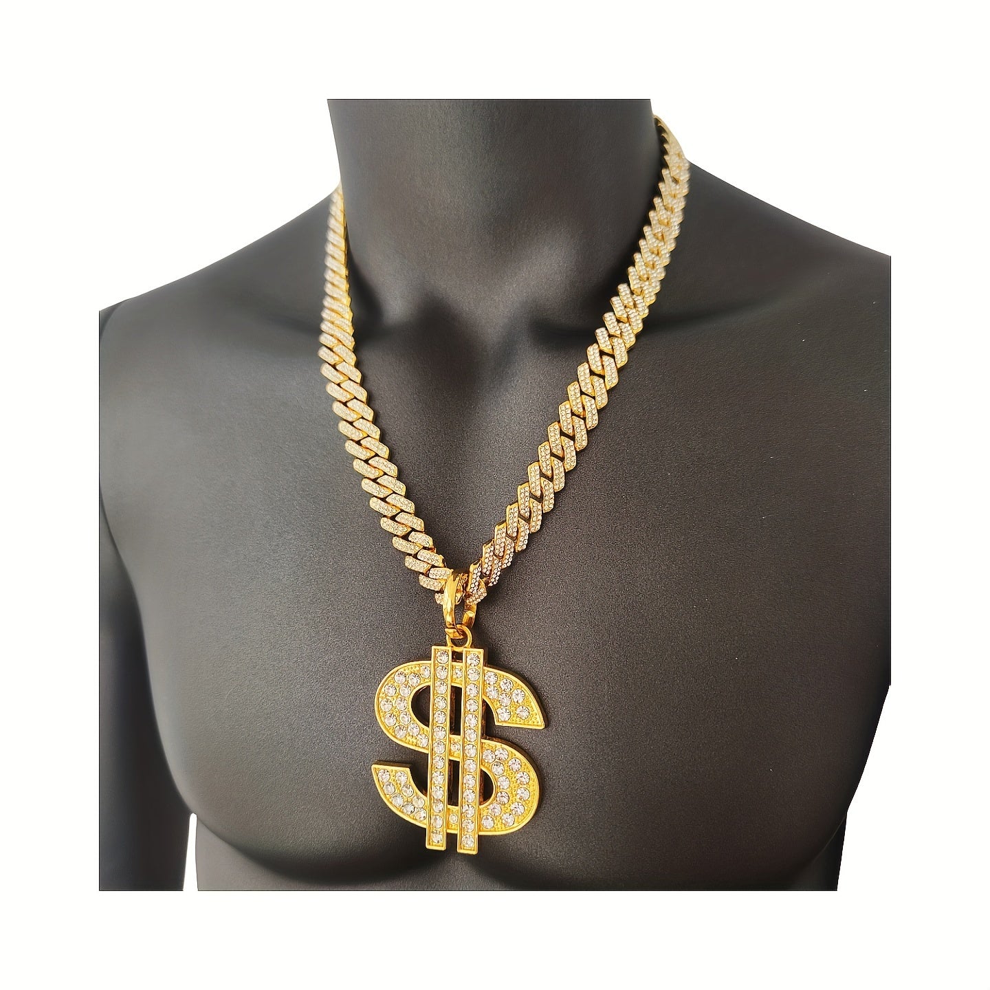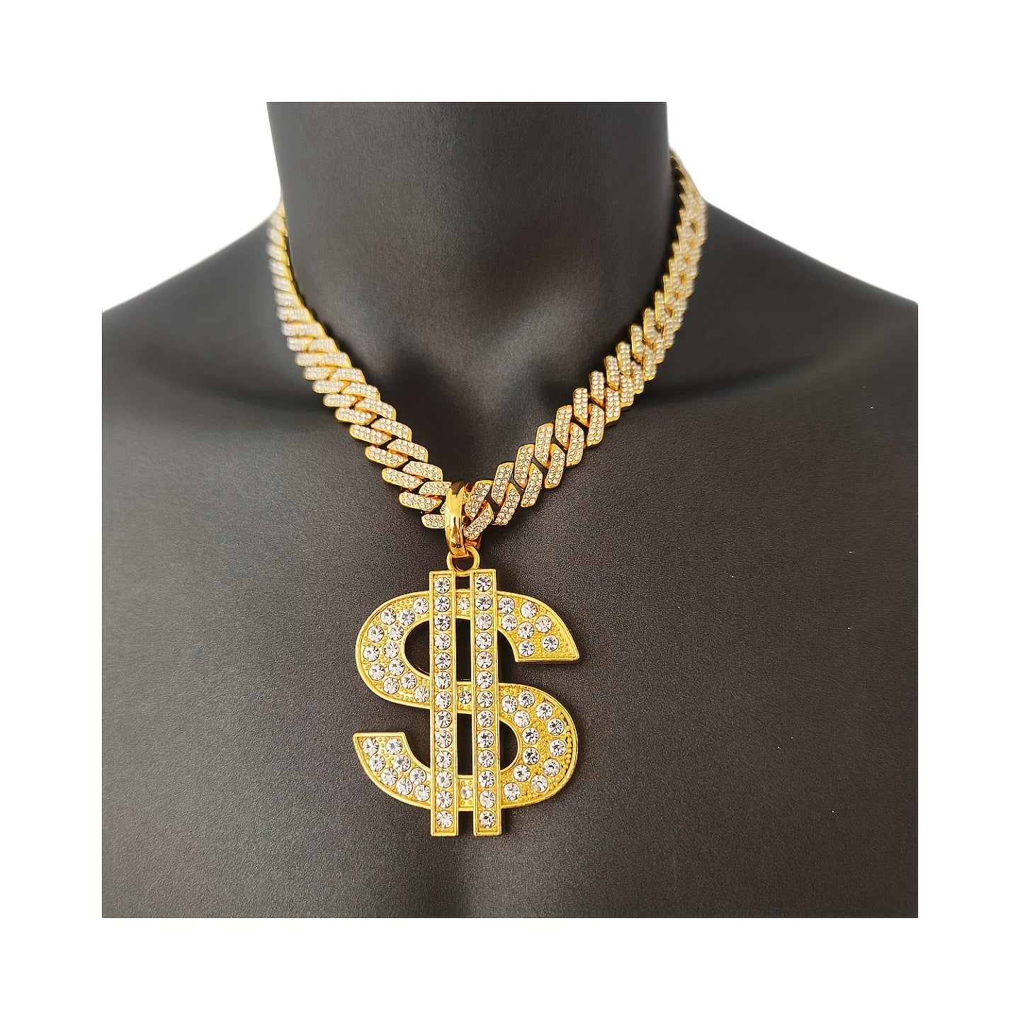Get the hip hop style with this heavy US dollar symbol pendant necklace. The 14mm faux diamond adds a touch of personality to your look.
