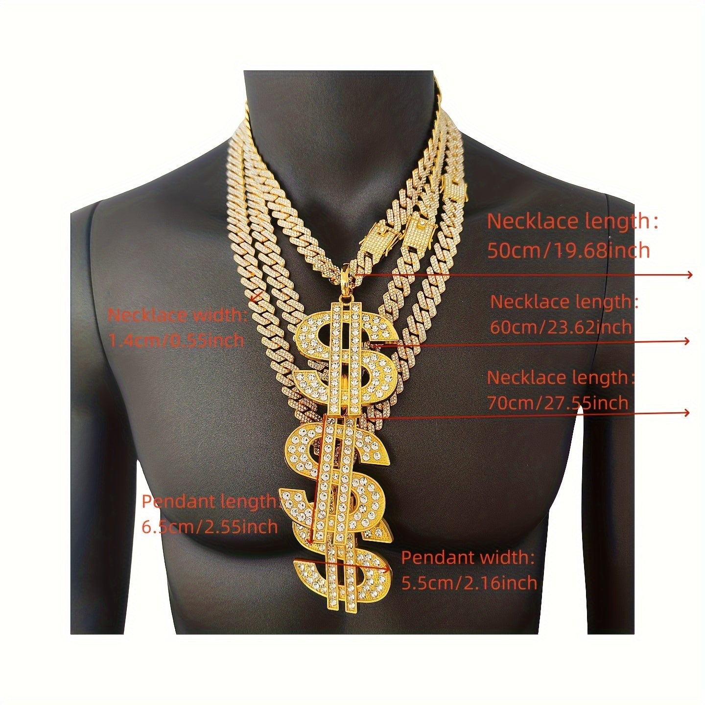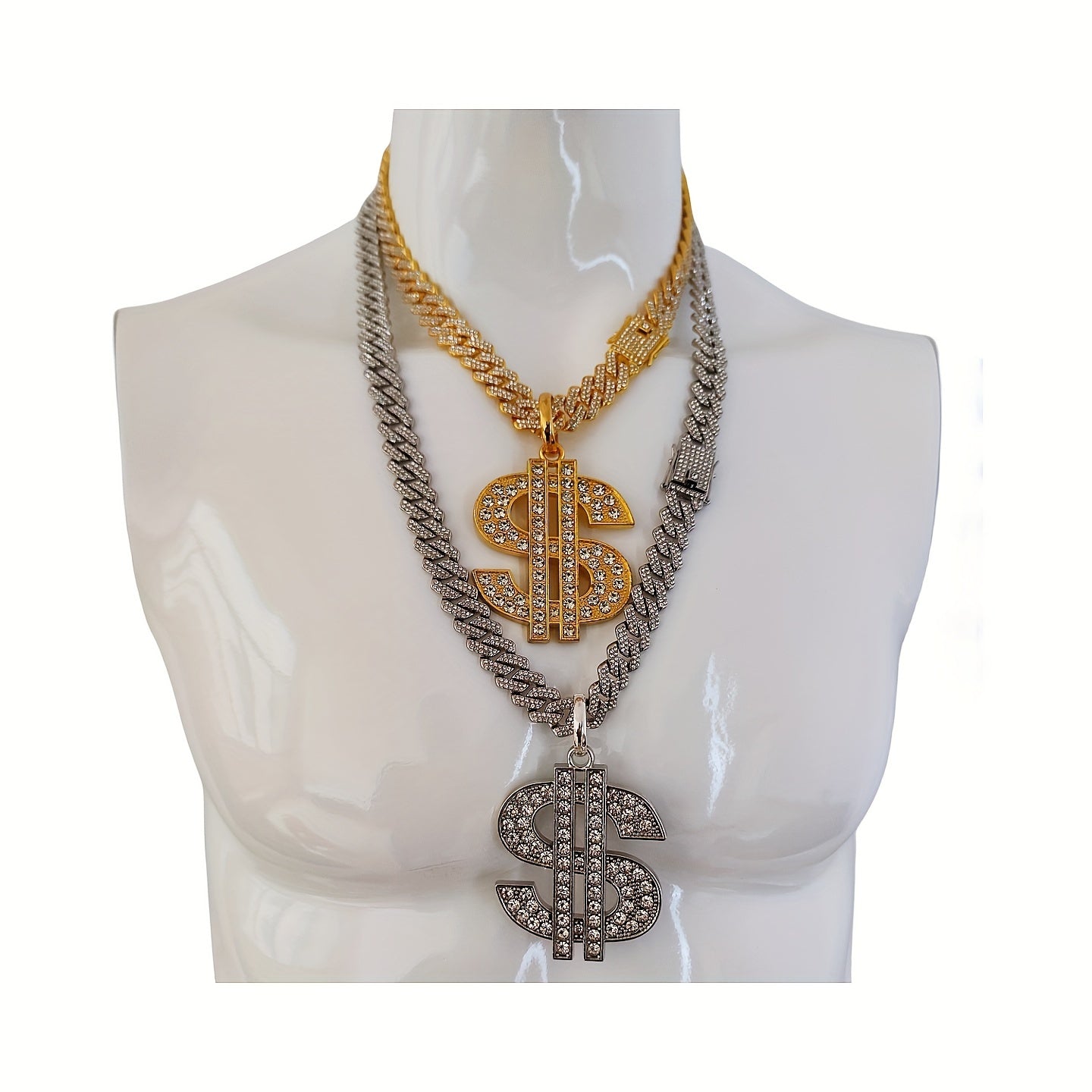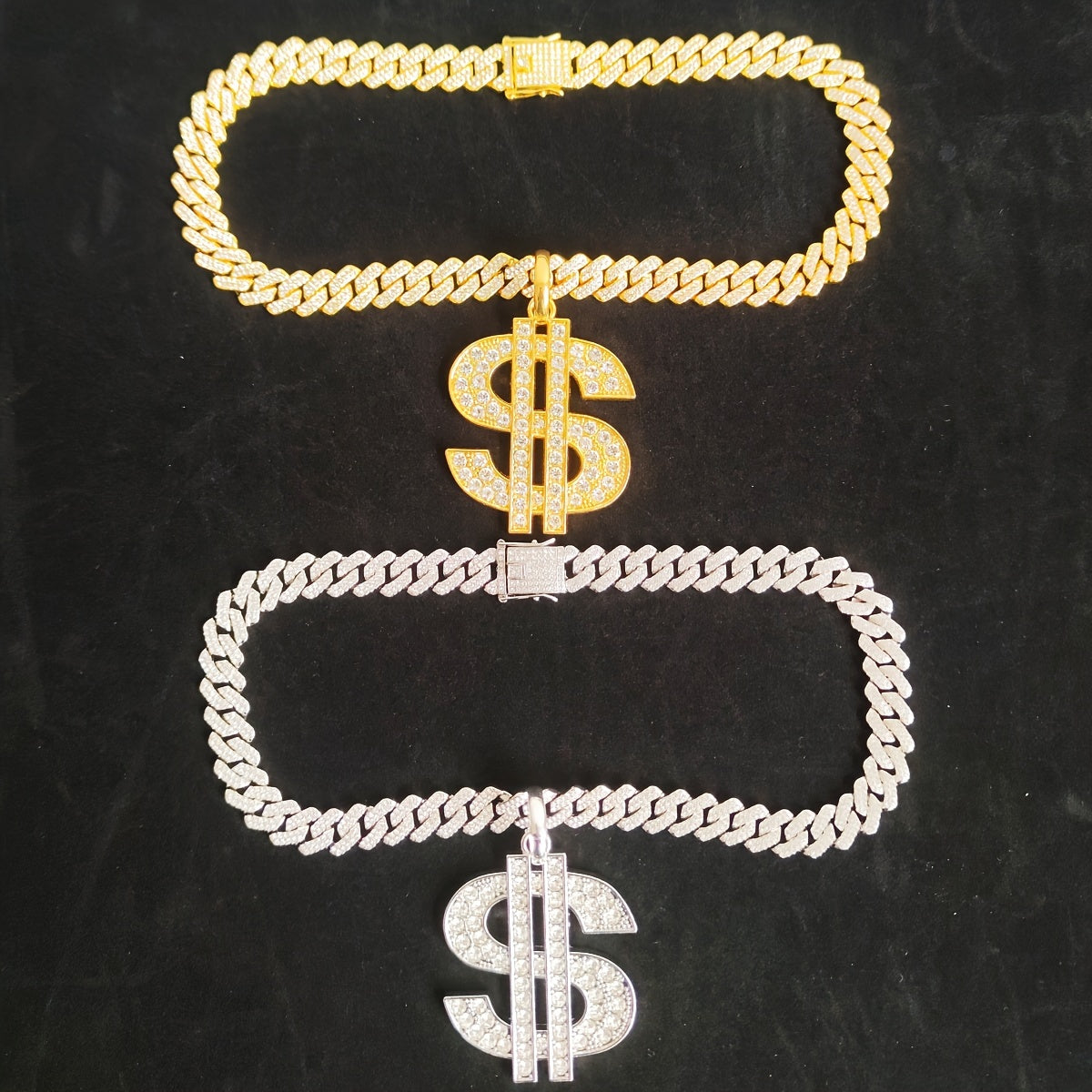 Get the hip hop style with this heavy US dollar symbol pendant necklace. The 14mm faux diamond adds a touch of personality to your look.