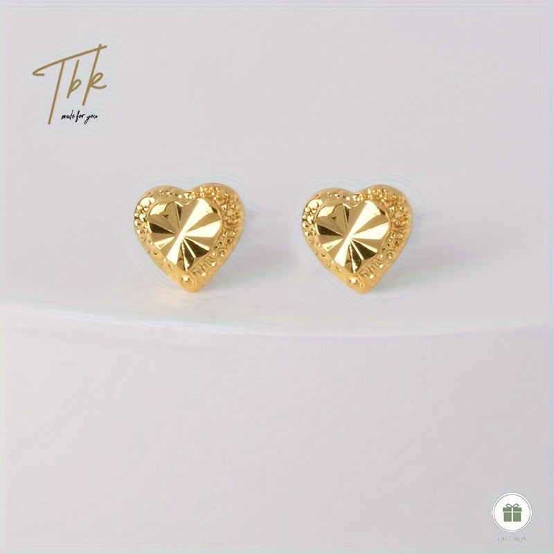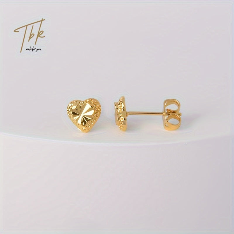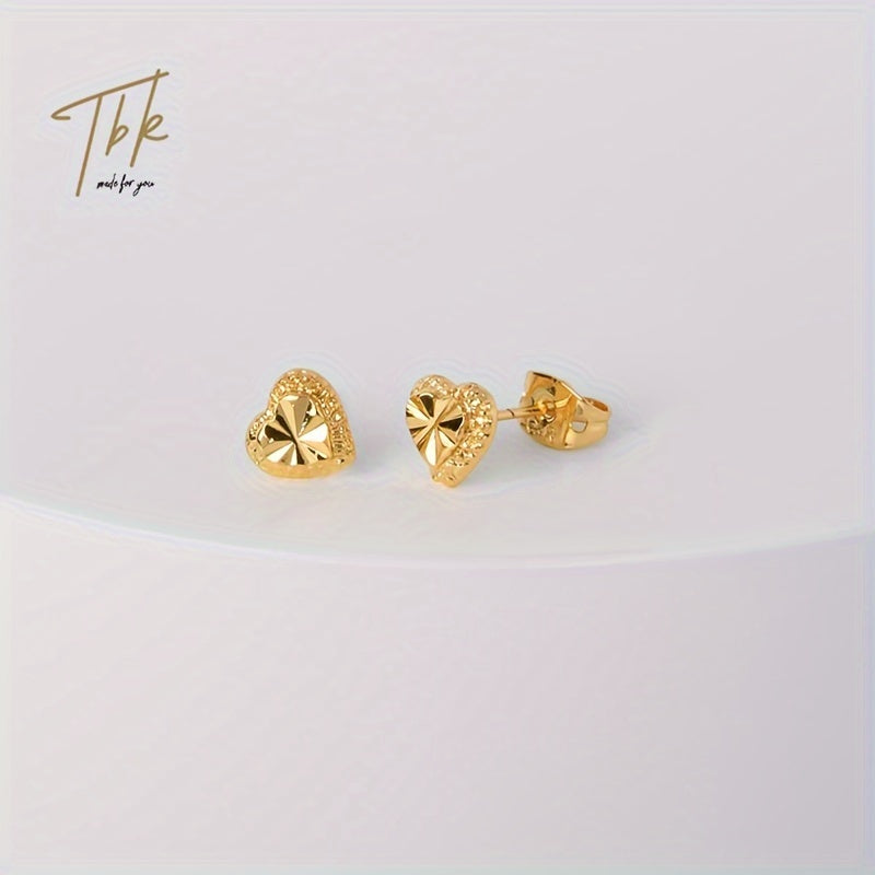 18K Plated Heart Stud Earrings Hypoallergenic Perfect for Everyday & Gift Giving