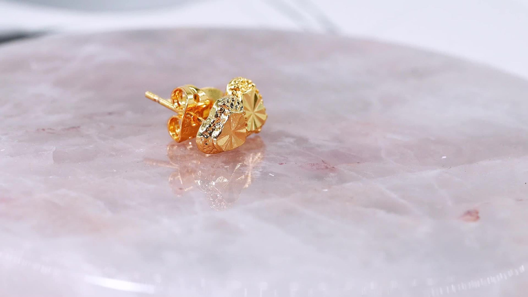 These heart stud earrings are plated with 18K gold, hypoallergenic and textured, making them the ideal accessory for everyday wear and gift giving. Adjustable design makes them suitable for various occasions.