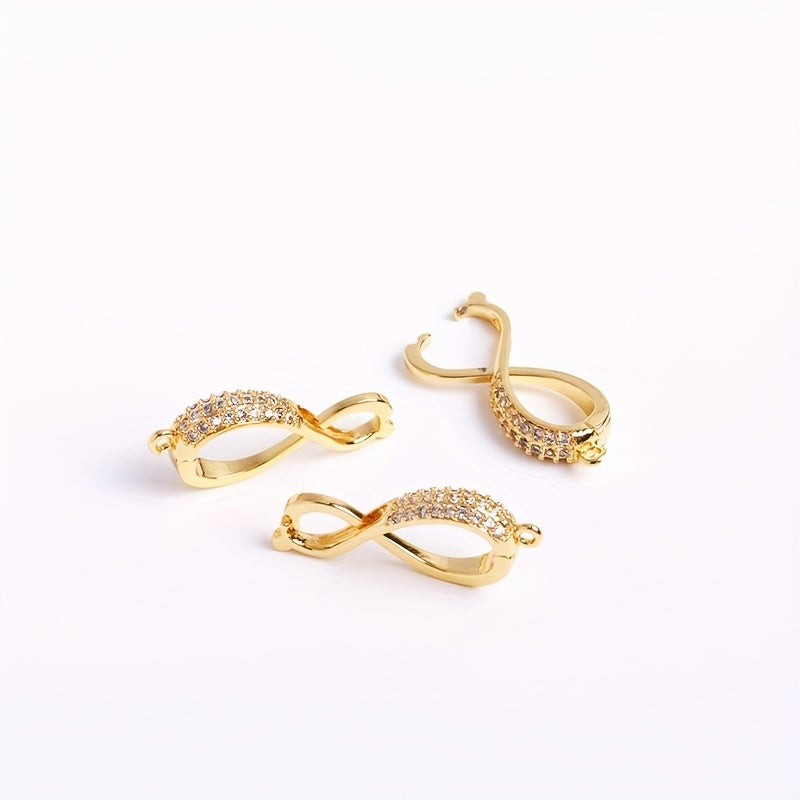 Add a touch of elegance to your jewelry with this infinity symbol shape connector. Made of brass and inlaid with zircon pearls, it's perfect for making bracelets and necklaces.