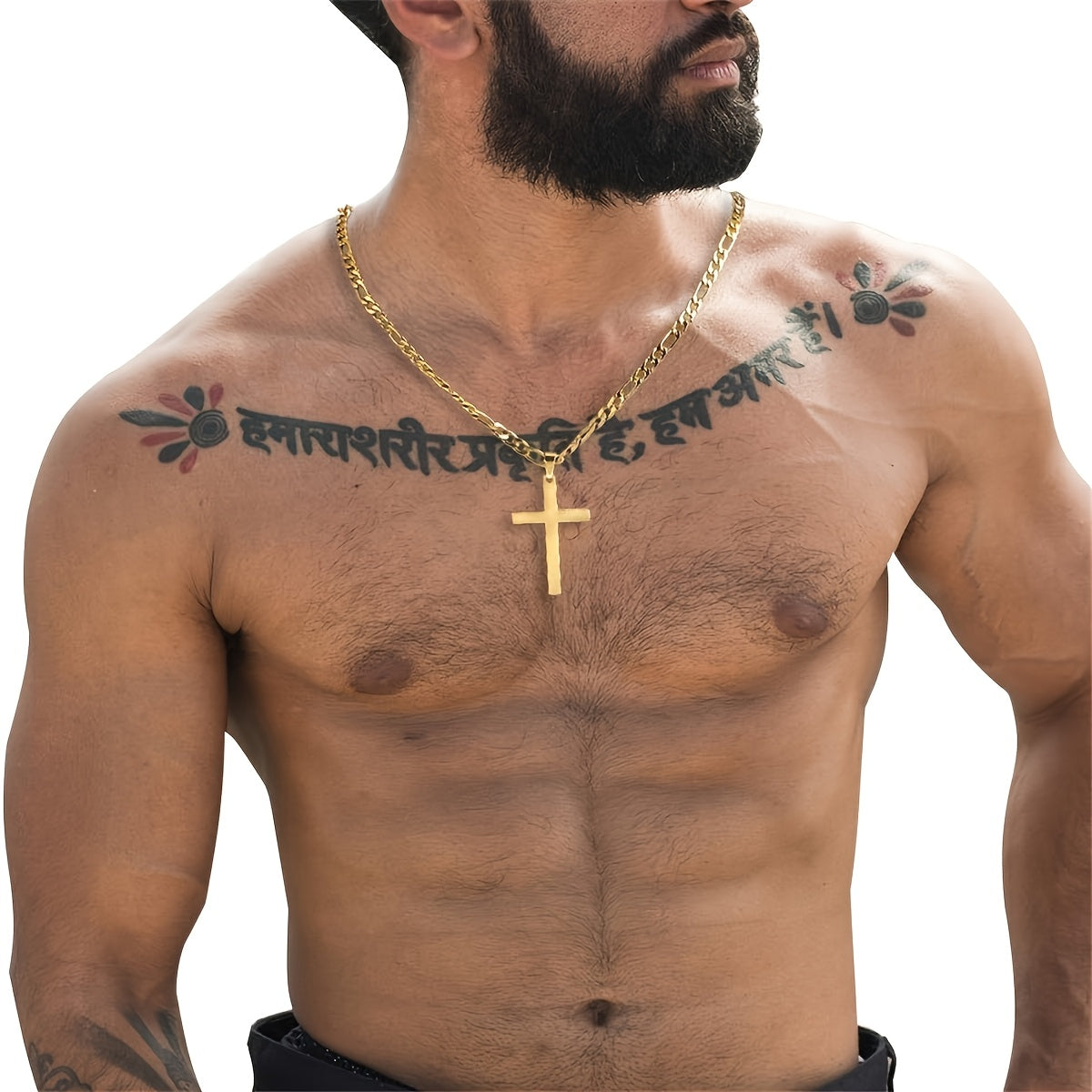 • 18K plated men's cross pendant necklace