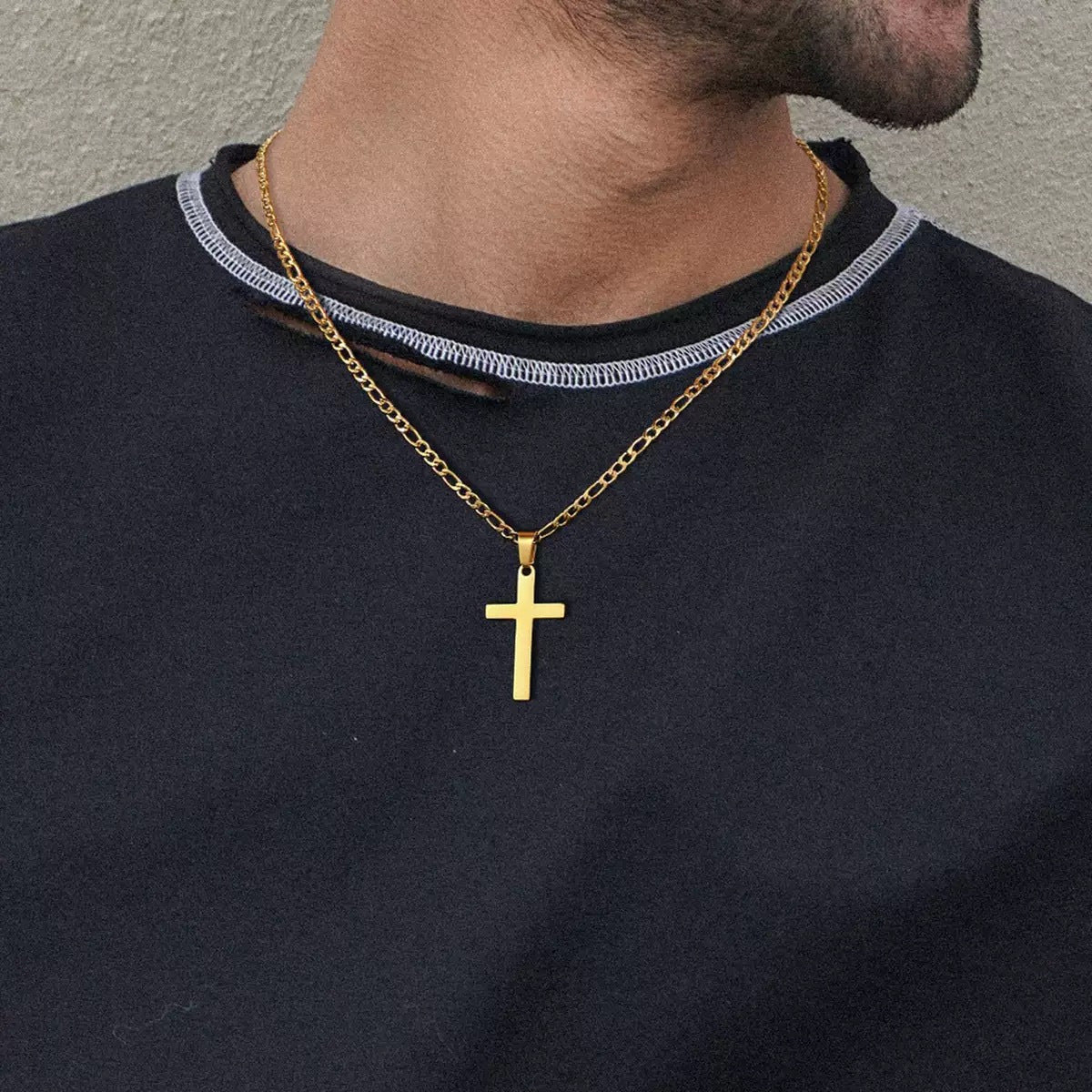 Elevate your style with this modern minimalist cross pendant necklace. Made from durable materials, this versatile jewelry is suitable for casual and formal wear, making it a perfect gift for him.