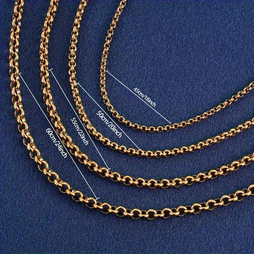 18K Plated Square Necklace Chain 18 24 Inch Hip Hop Stainless Steel Modern