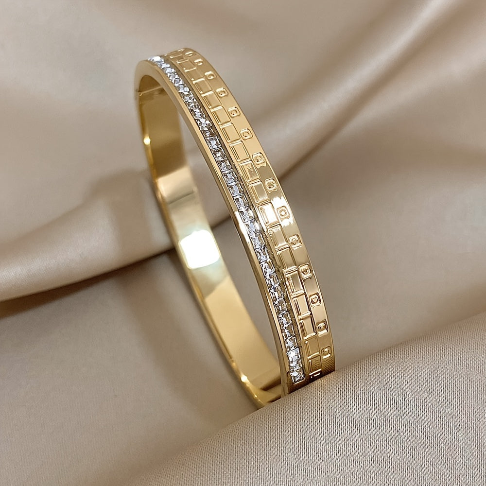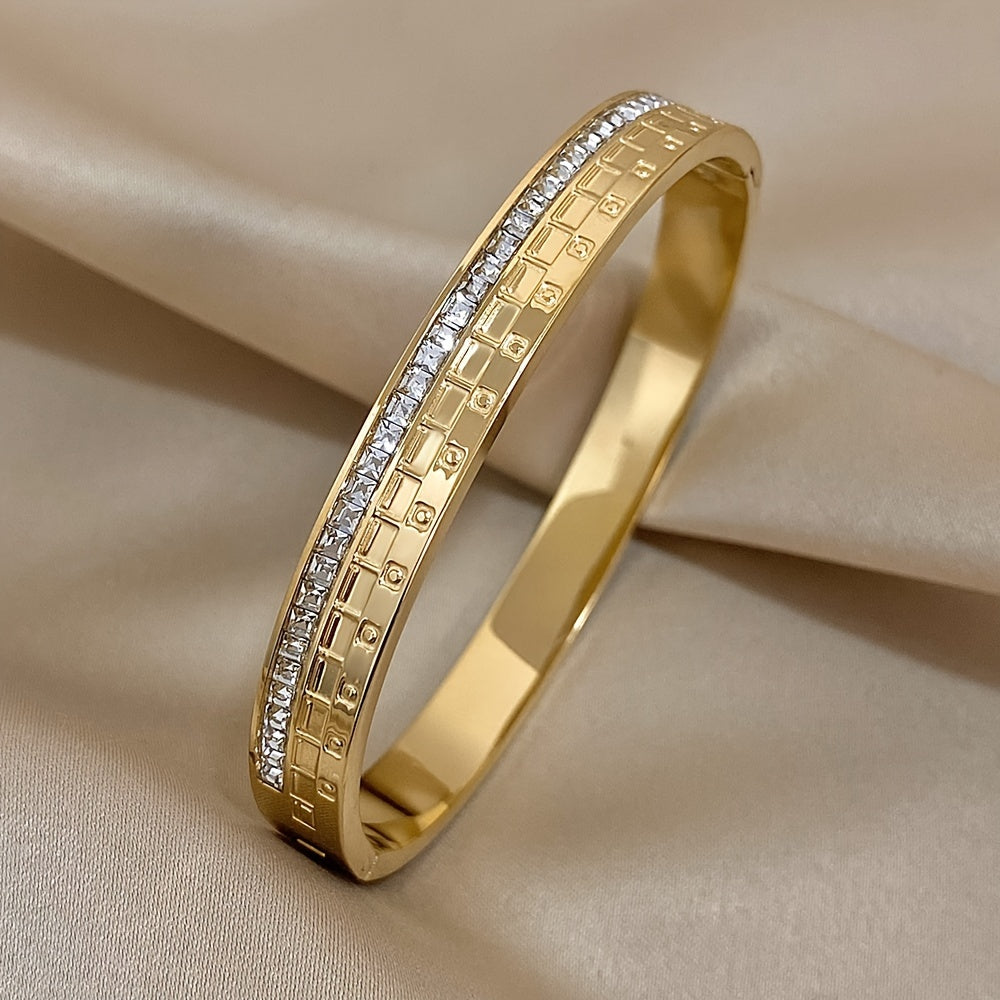 18K Plated Stainless Steel Bracelet with Synthetic Zirconia Inlay