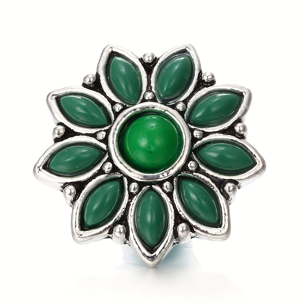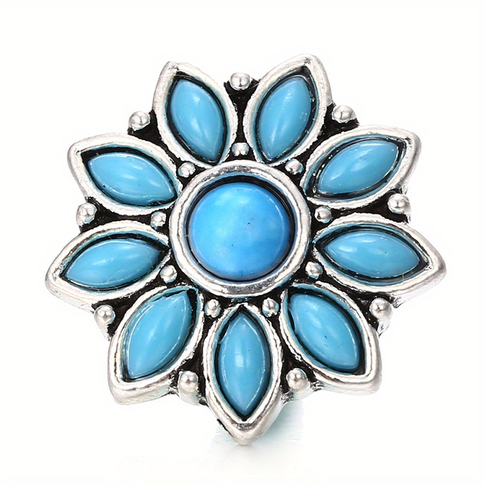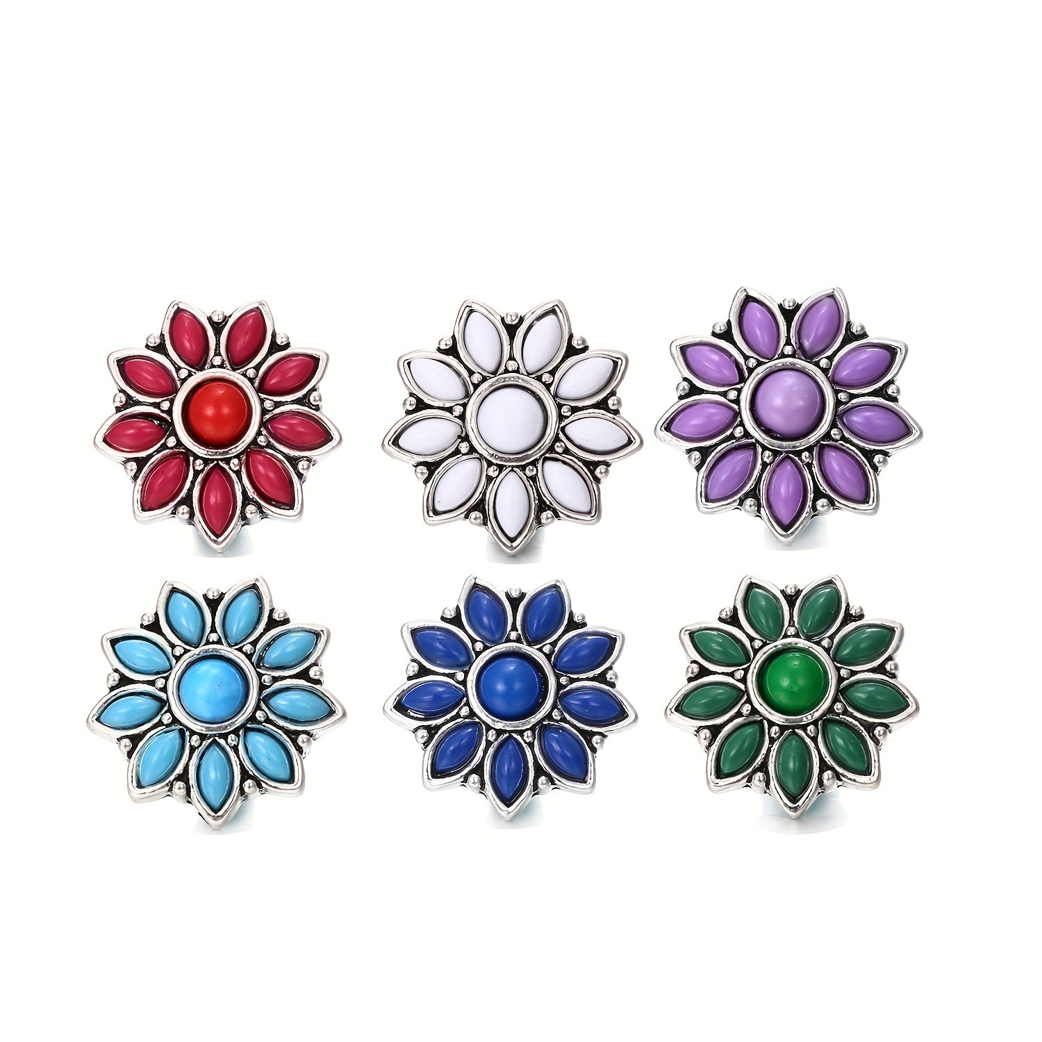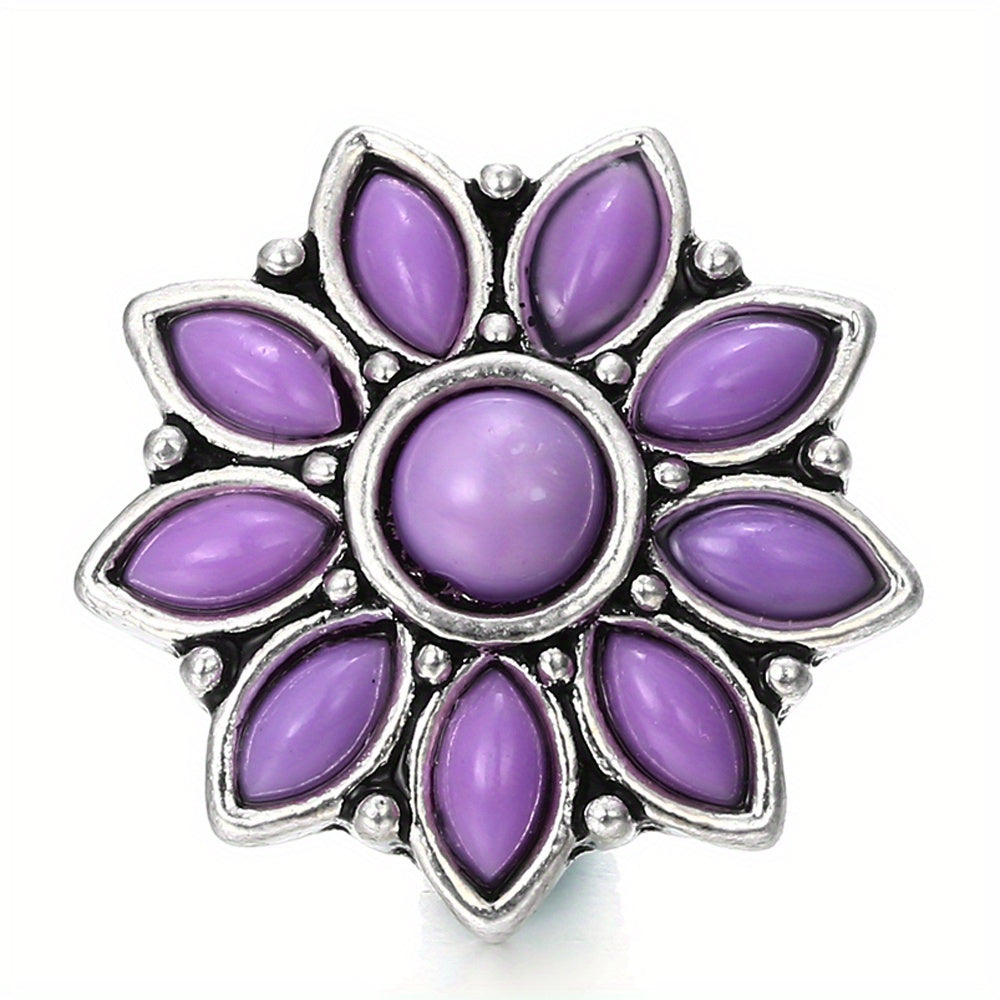 Create beautiful customized accessories with this 18mm alloy flower shape snap button studded with colorful rhinestones. Perfect for bracelets, necklaces, and more.