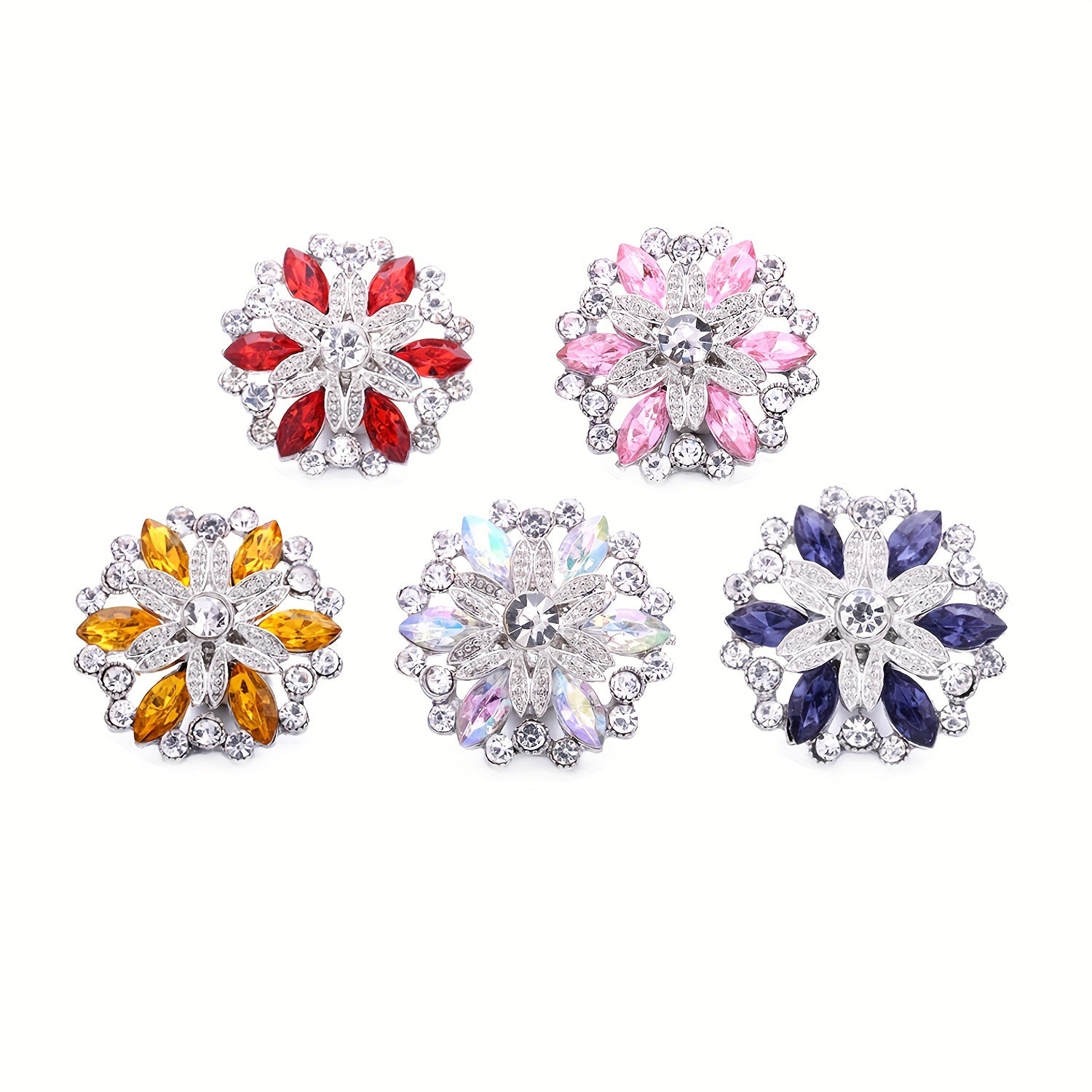 Add a touch of elegance to your DIY projects with this 18mm alloy flower snap button adorned with colorful rhinestones. Perfect for bracelets, necklaces, and other accessories.