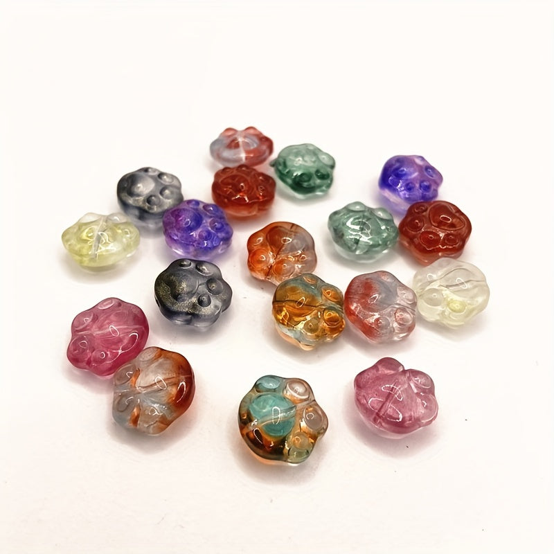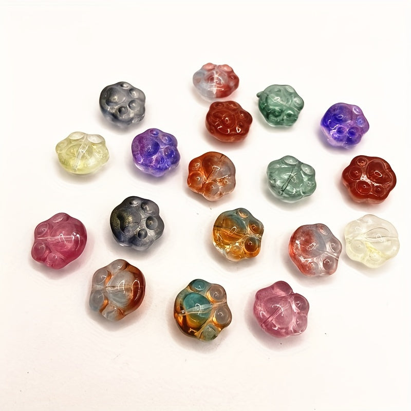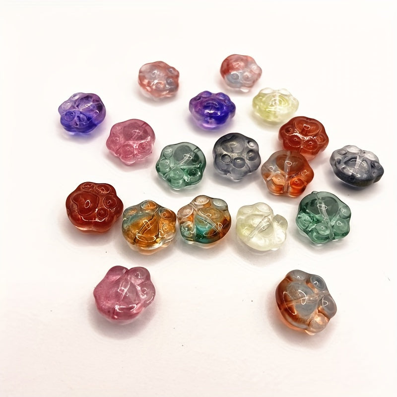 18pcs Paw Print Glass Beads for DIY Jewelry Making