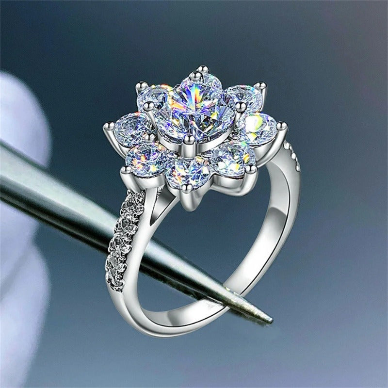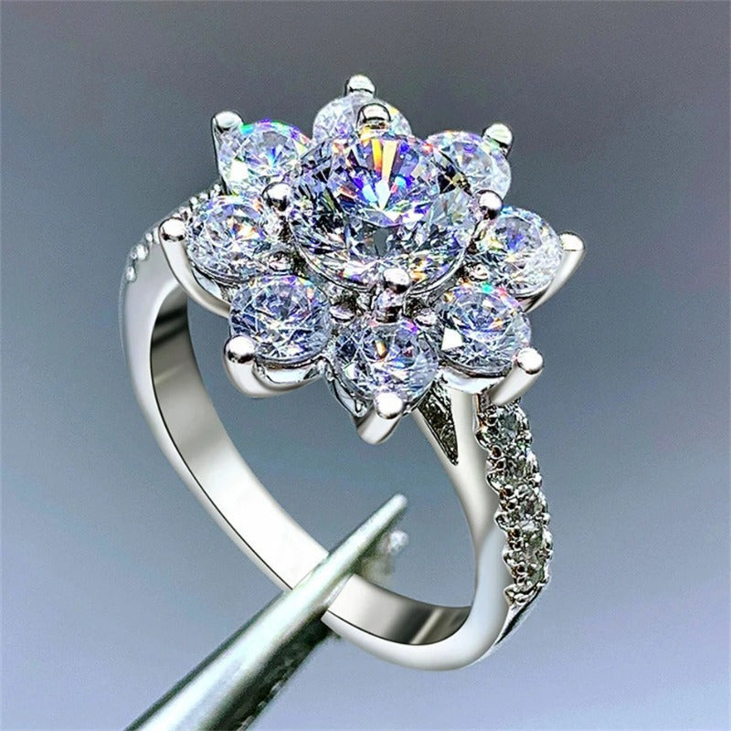 Stunning flower-shaped Moissanite ring featuring a 1CT brilliant stone. Perfect accessory for any occasion.