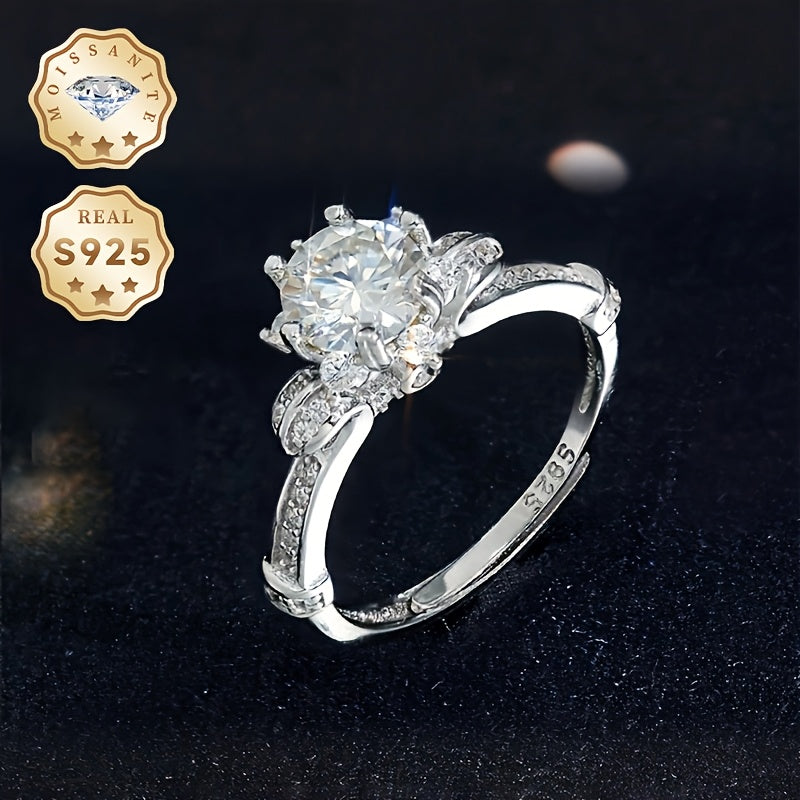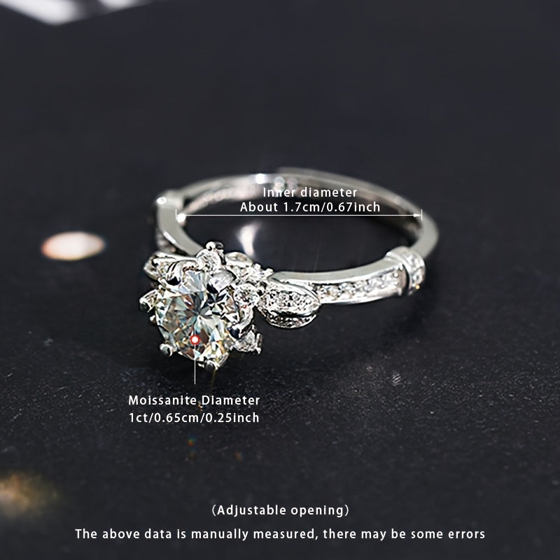 This stunning open end ring features a 1ct Moissanite gemstone set in S925 silver. The adjustable design and flower goddess style make it a perfect gift for weddings. Comes gift boxed.