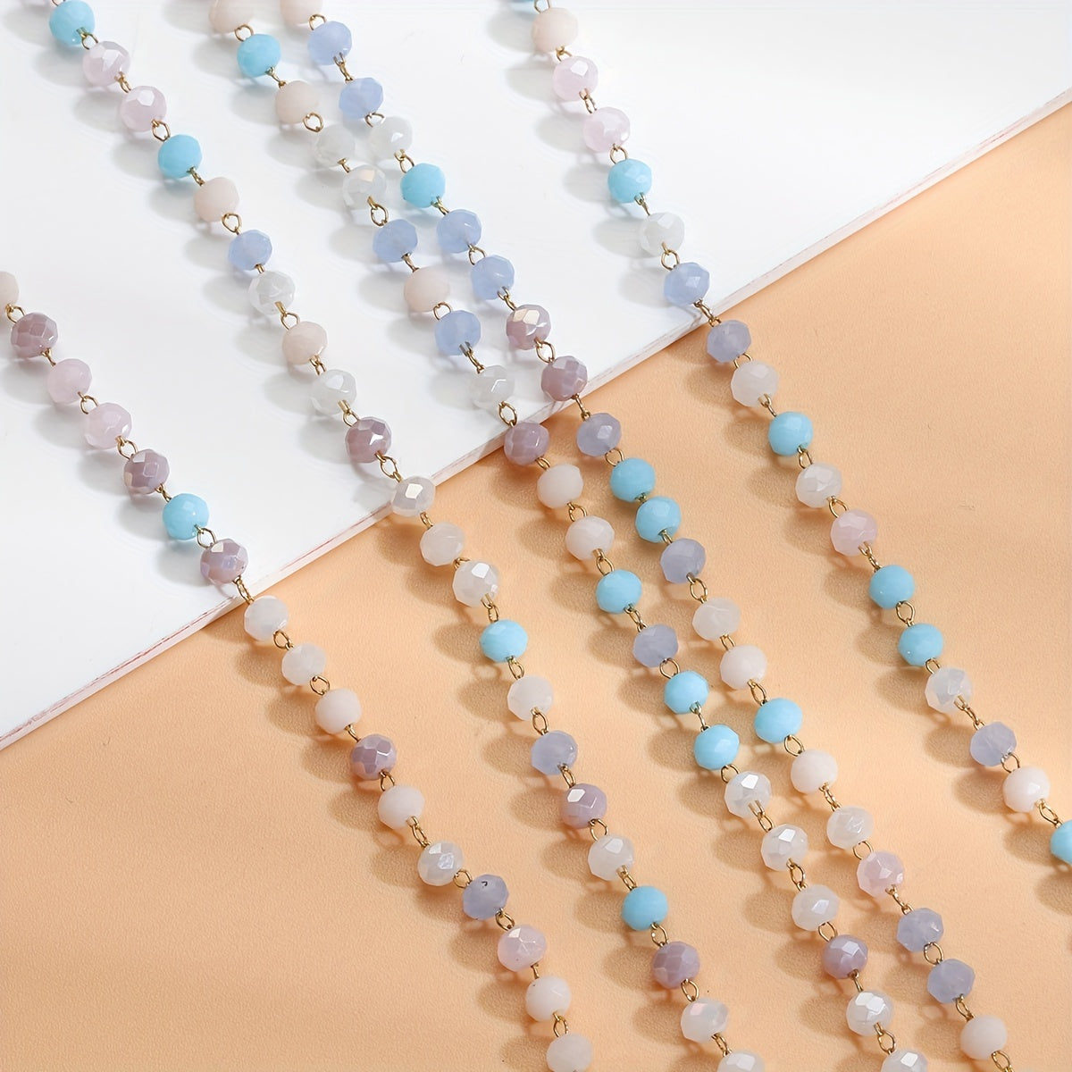 Get creative with this 1-meter long crystal stone stainless steel chain in red and purple. Perfect for making necklaces, bracelets, or sweater chains.