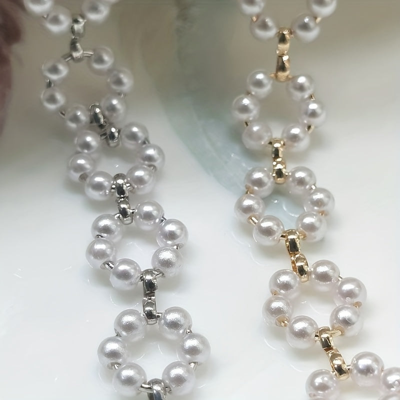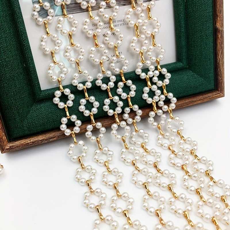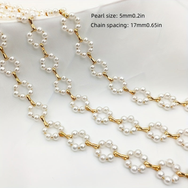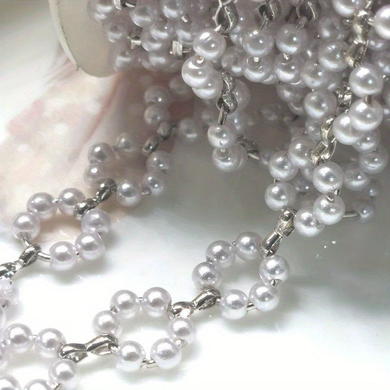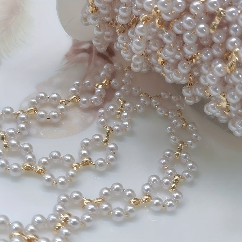 This faux pearl chain is perfect for clothing or accessory decoration. It measures 1 meter in length and is available in gold or silver.
