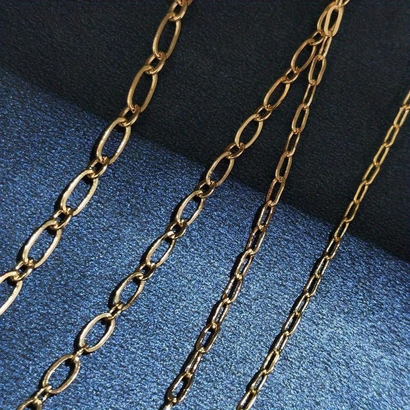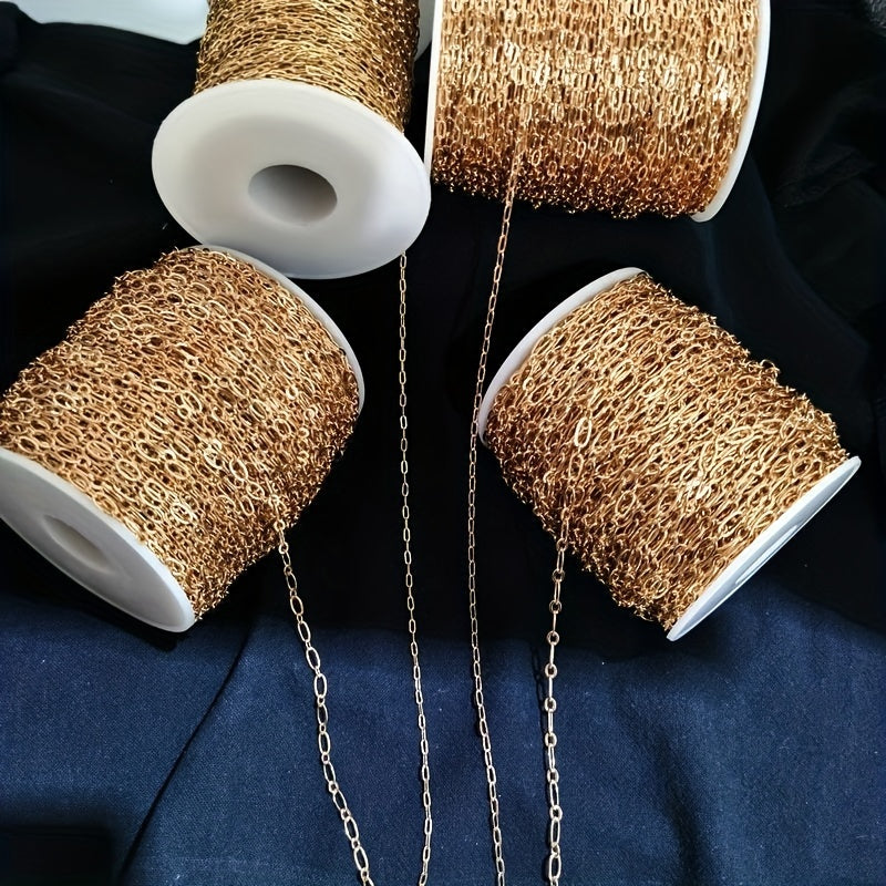 This 1 meter golden stainless steel electroplated chain is perfect for creating your own bracelets, necklaces, and other DIY jewelry pieces.