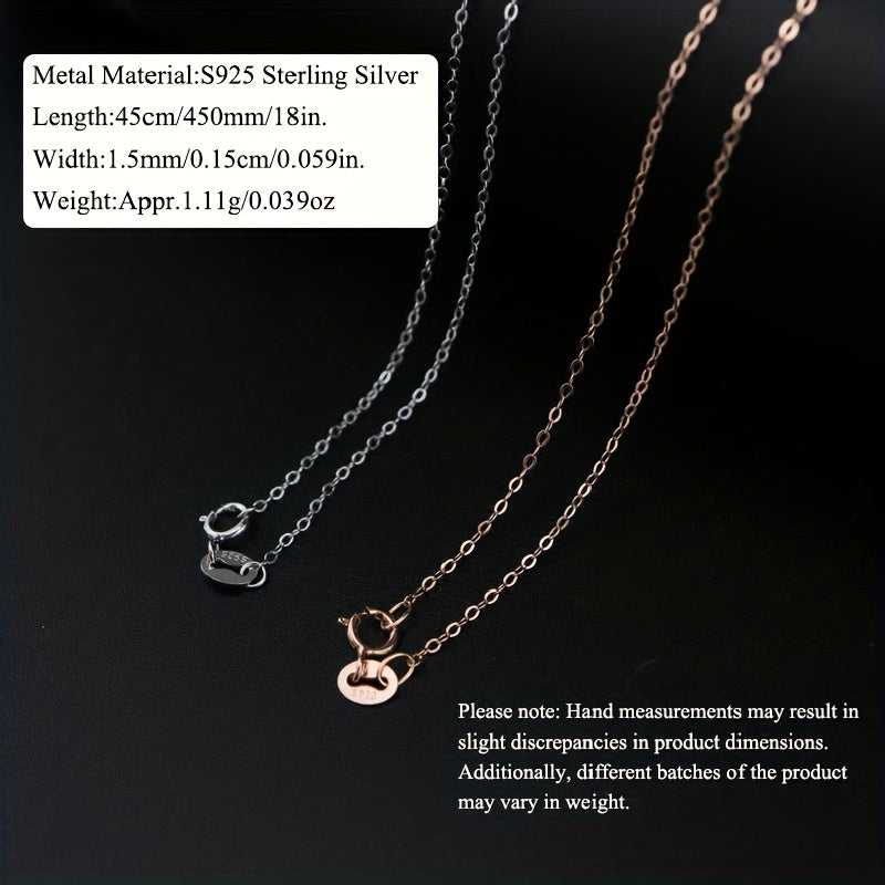 This 1.5mm rose gold chain necklace is made of 925 sterling silver and measures 18 inches. Suitable for DIY jewelry projects.