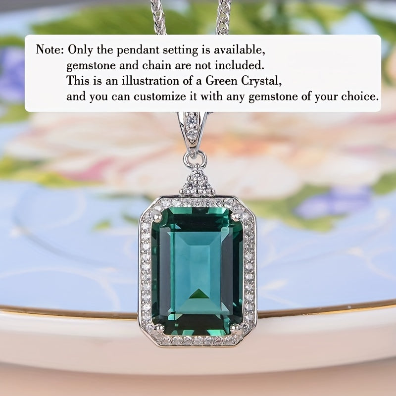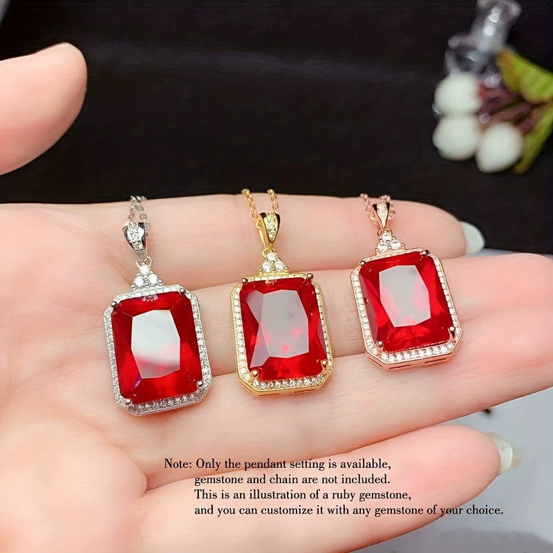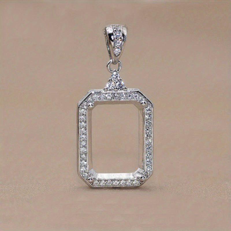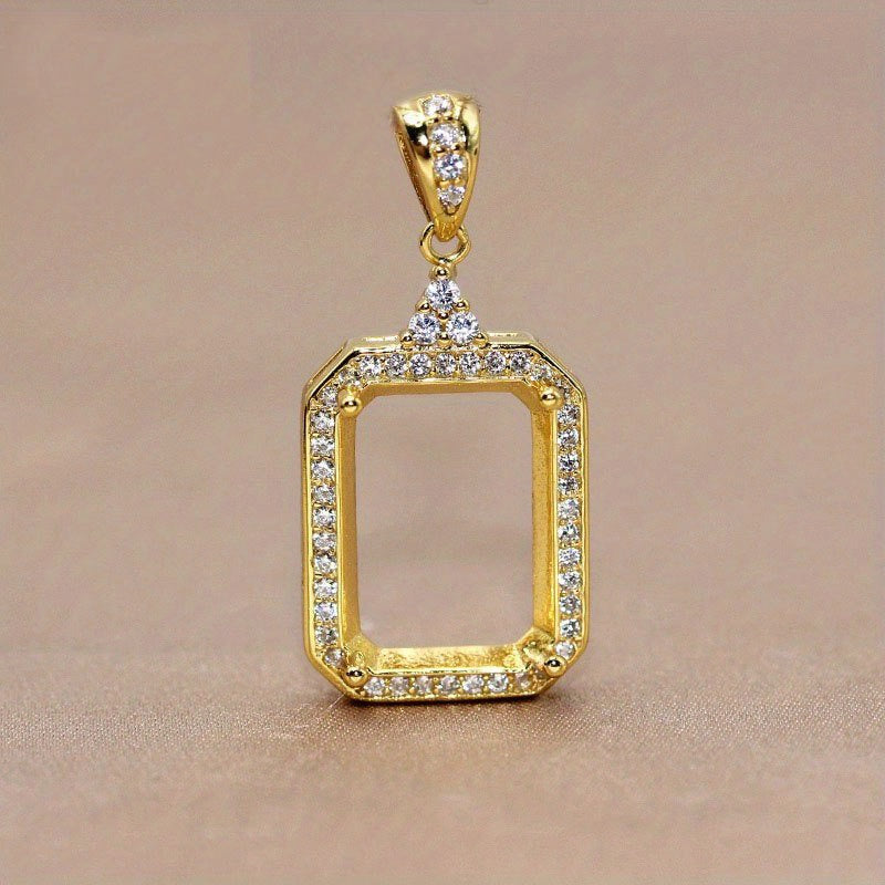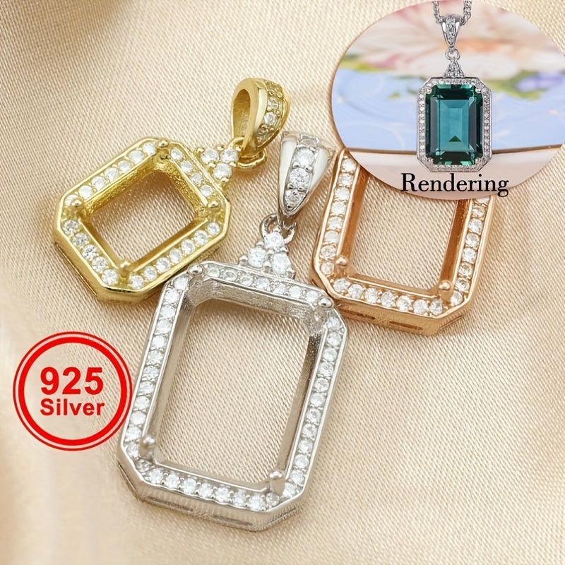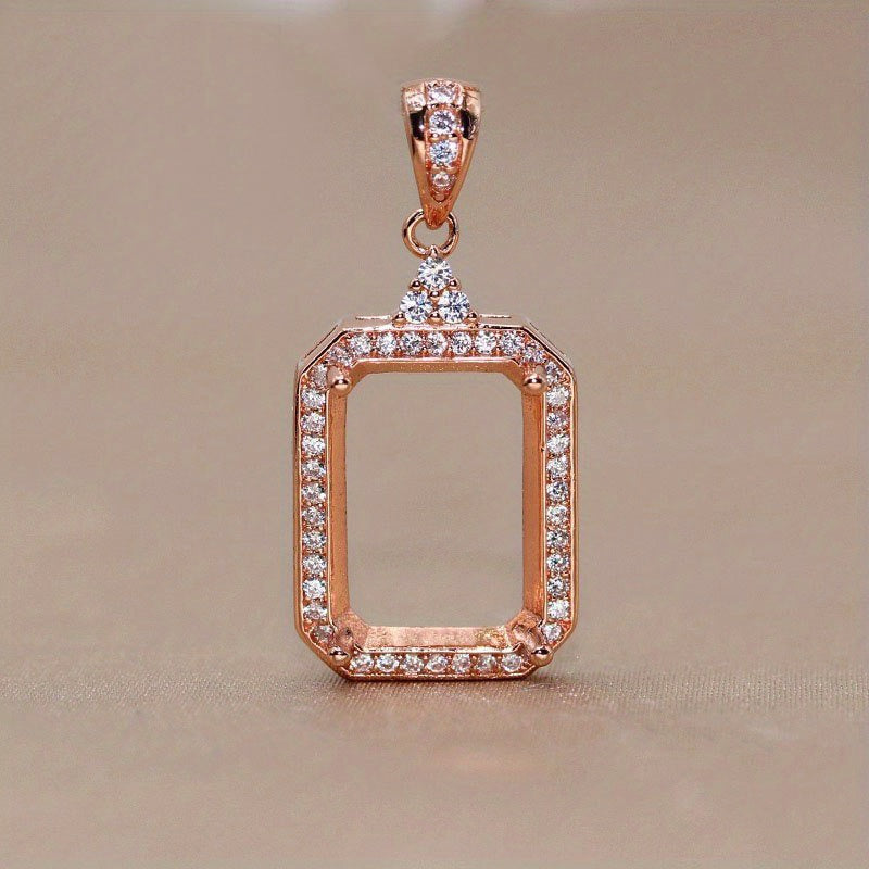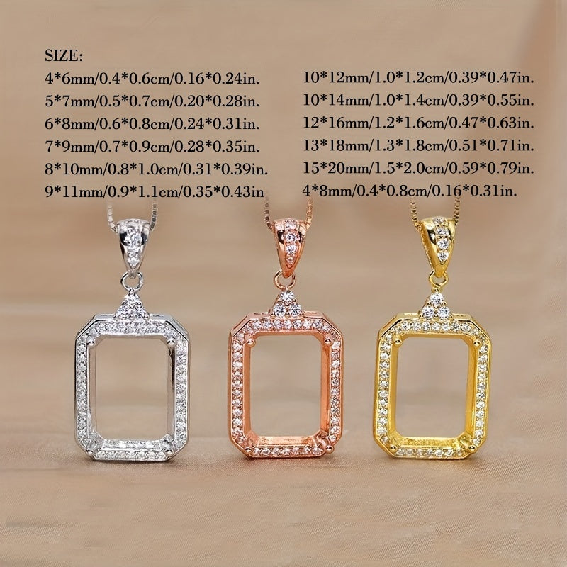 1Pc 925 Sterling Silver Rose Golden/Silvery Rectangle Bezel Settings DIY Pendant