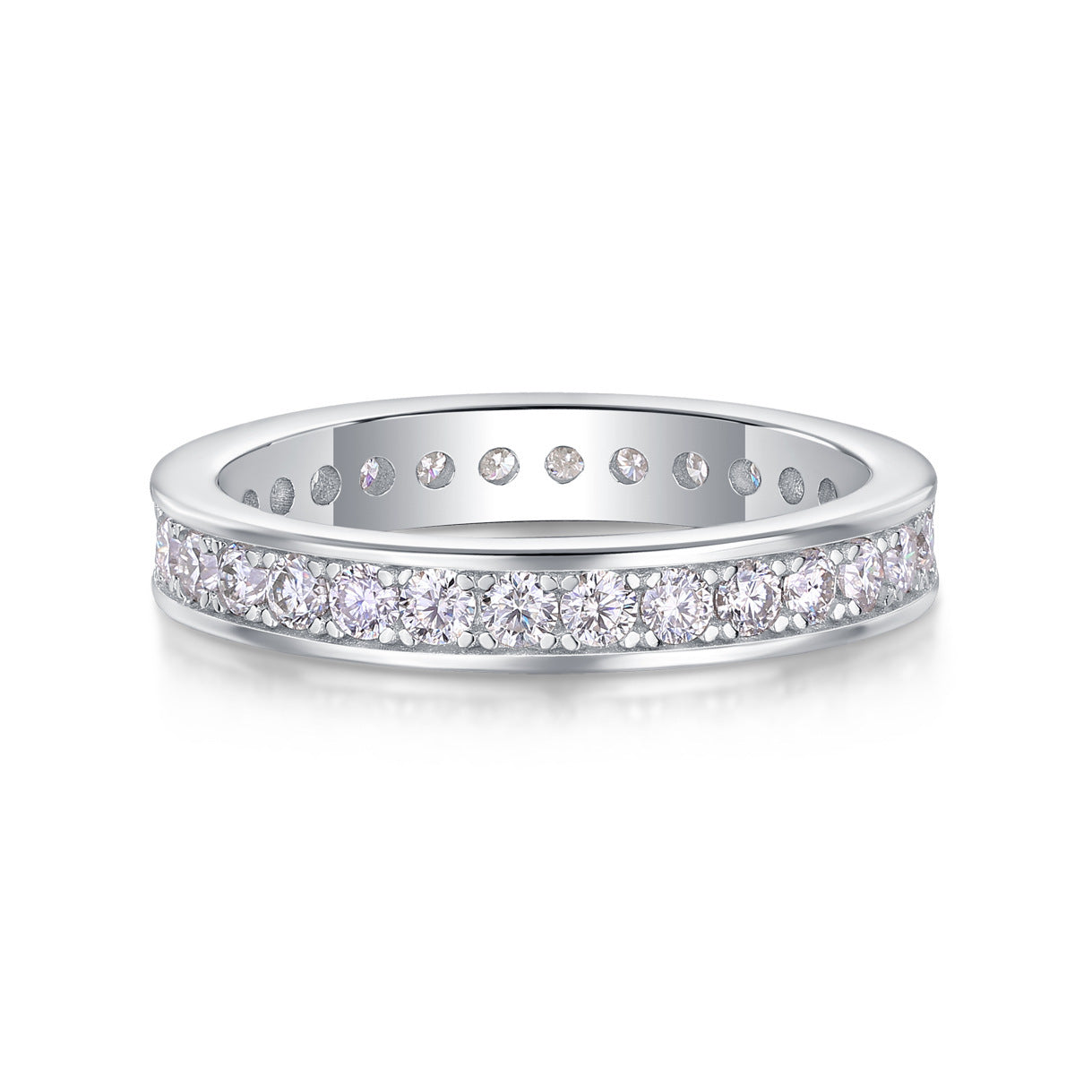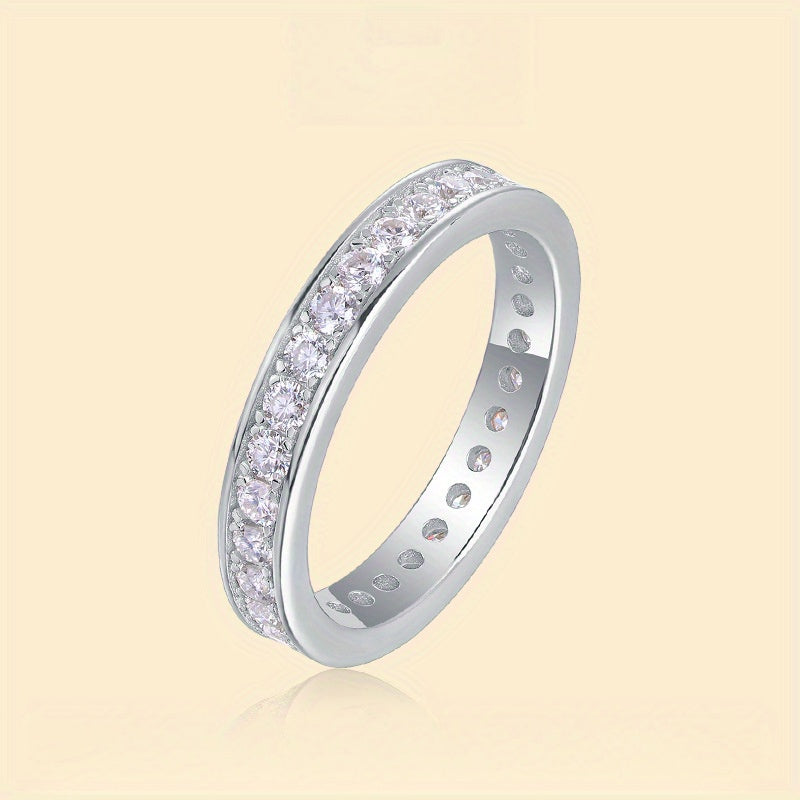 This versatile ring is crafted with sparkling round cut moissanite stones, making it a durable and polished accessory. Perfect for autumn and winter outfits, this unisex ring is a sophisticated addition to any jewelry collection.