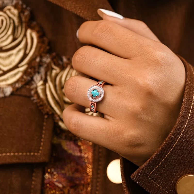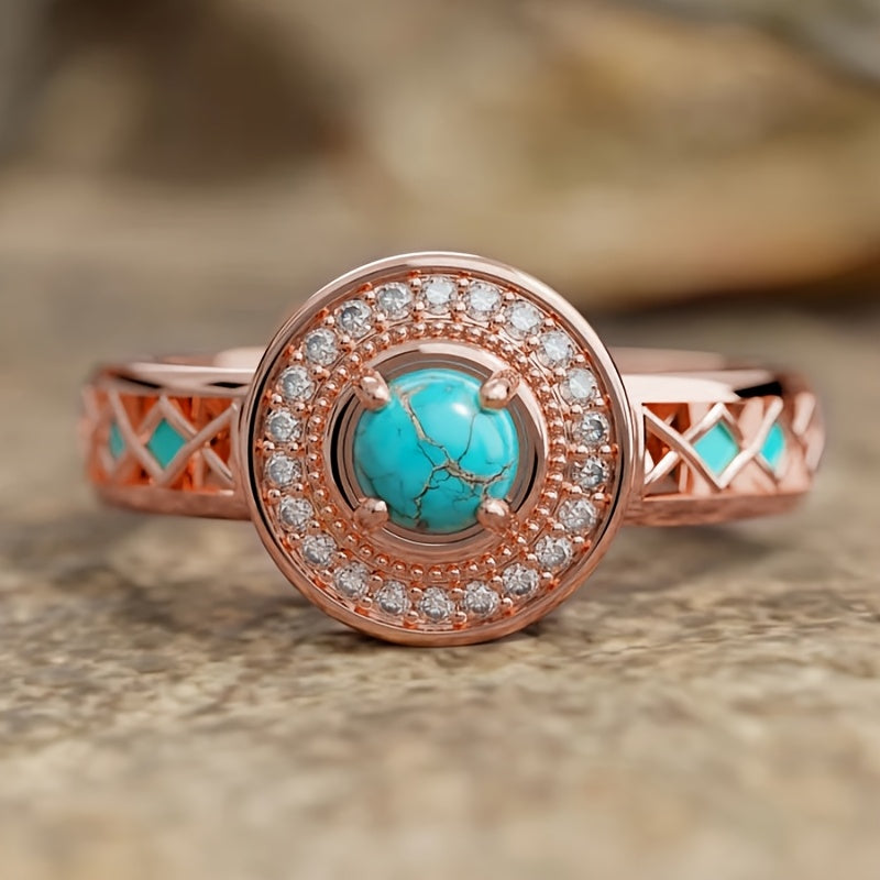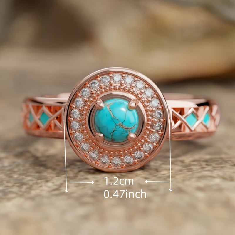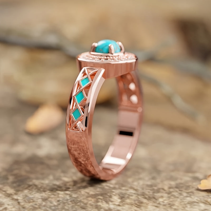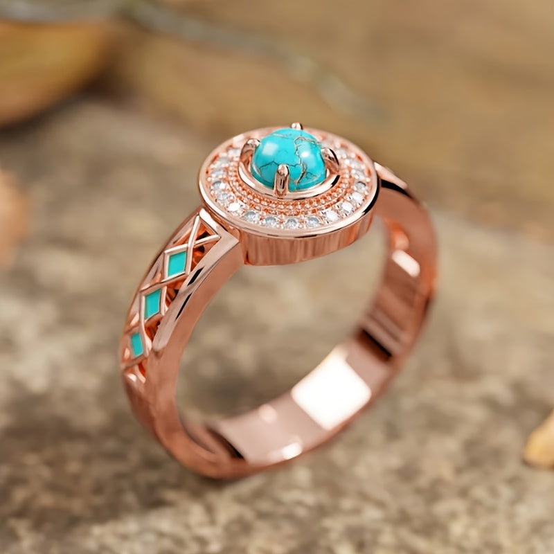 1pc READKISS Women's Rose Golden Ring with Synthetic Turquoise & Accents