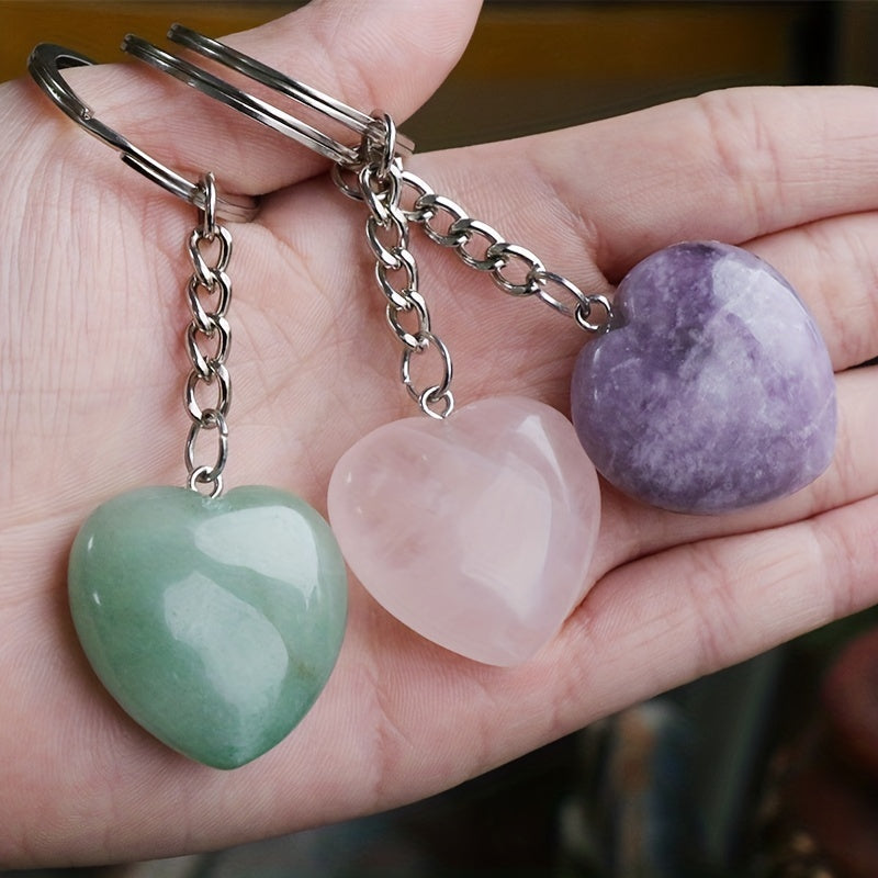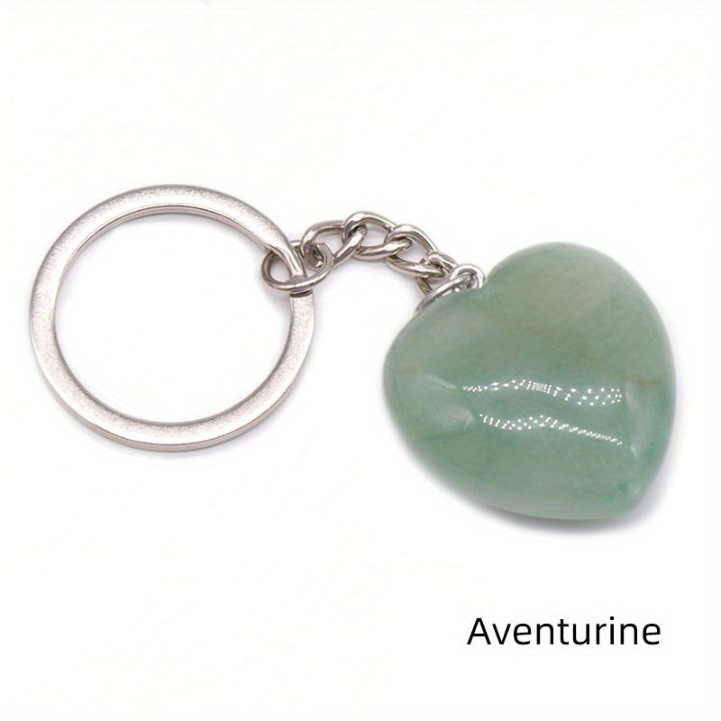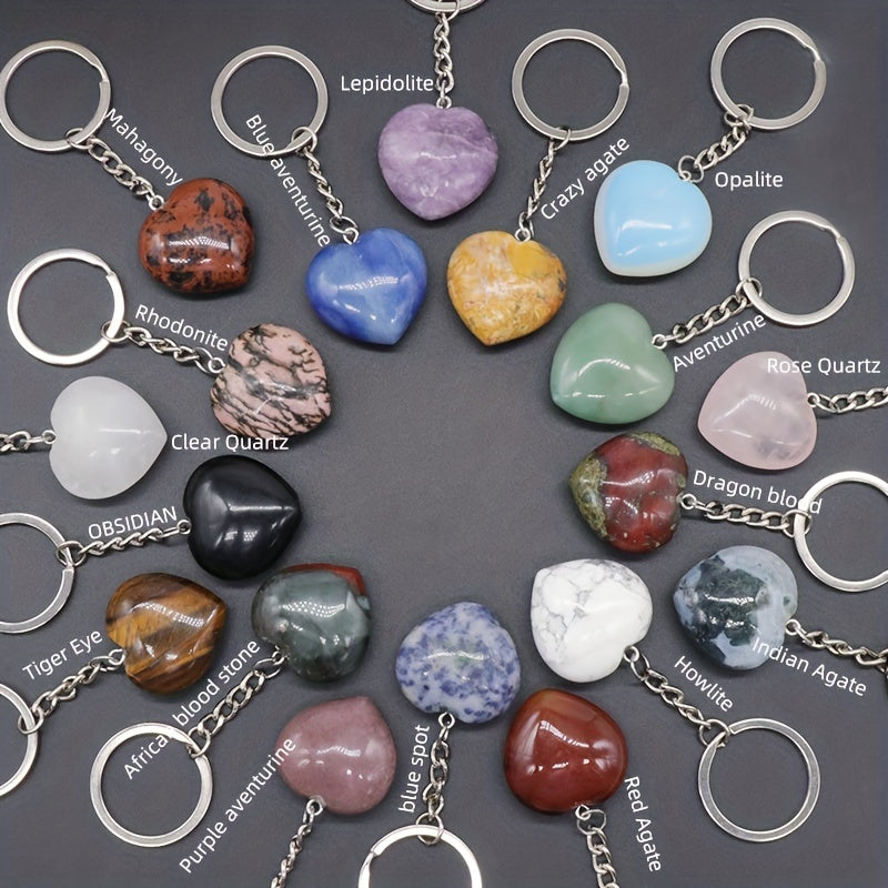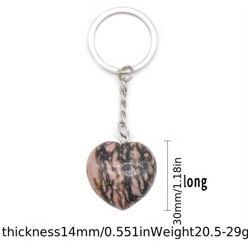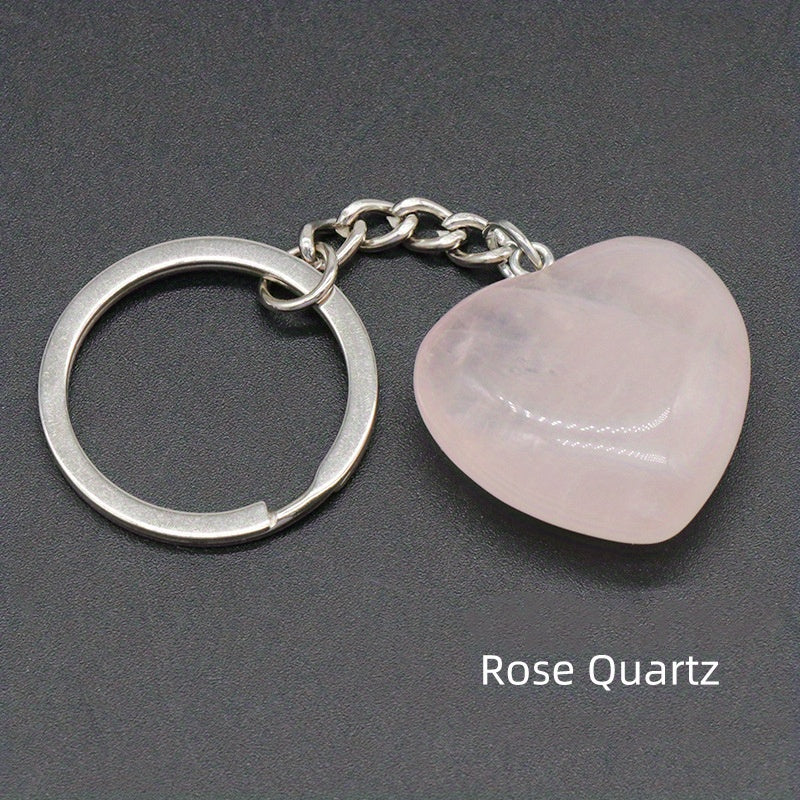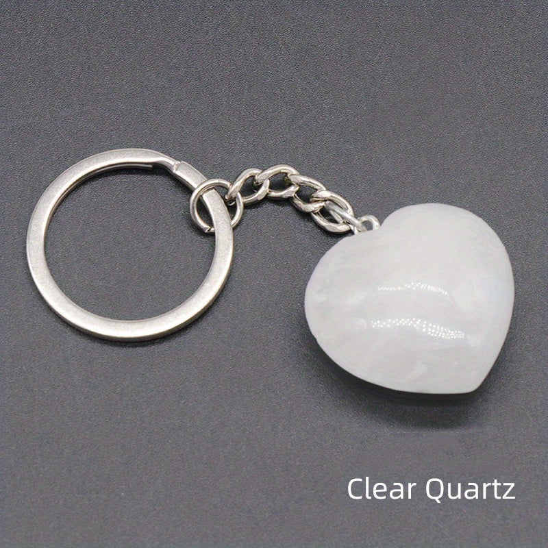 1pc Rock Crystal Agate Love Stone Key Chain Heart Pendant DIY Decorative