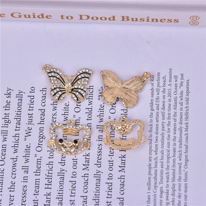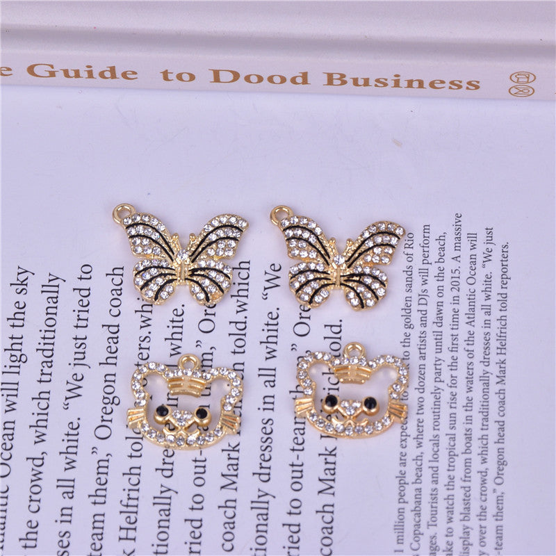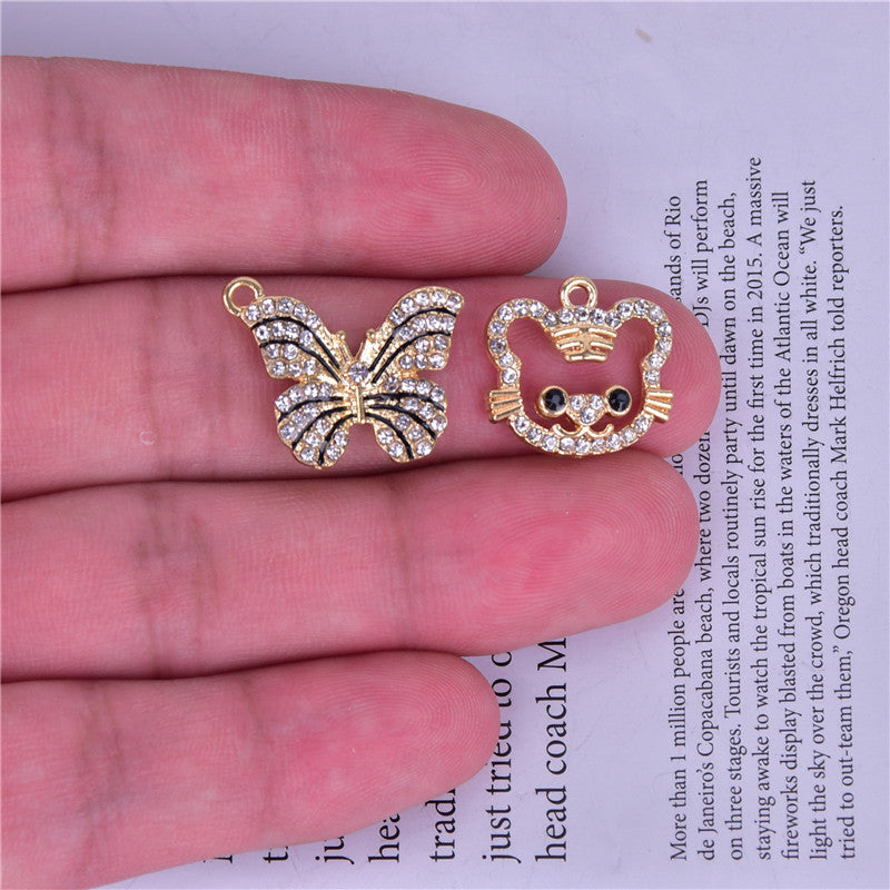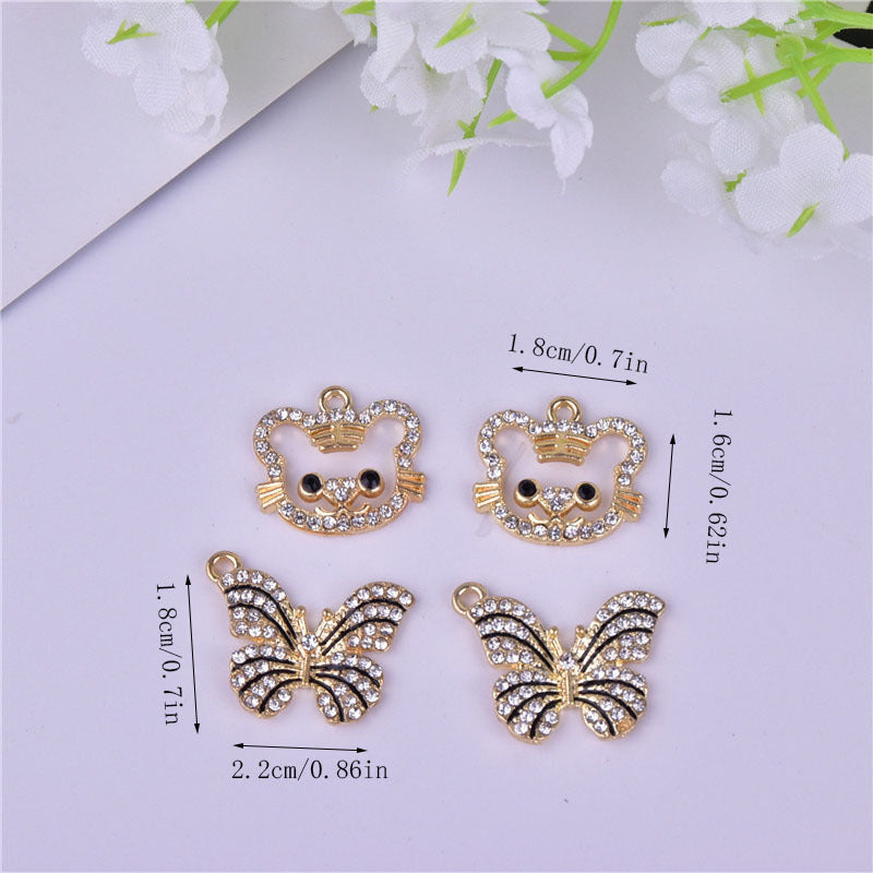 Enhance your style with these adorable small pendants featuring point drill striped butterfly and little tiger designs. Dripping oil finish adds a unique touch.