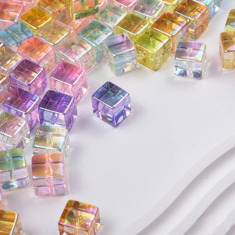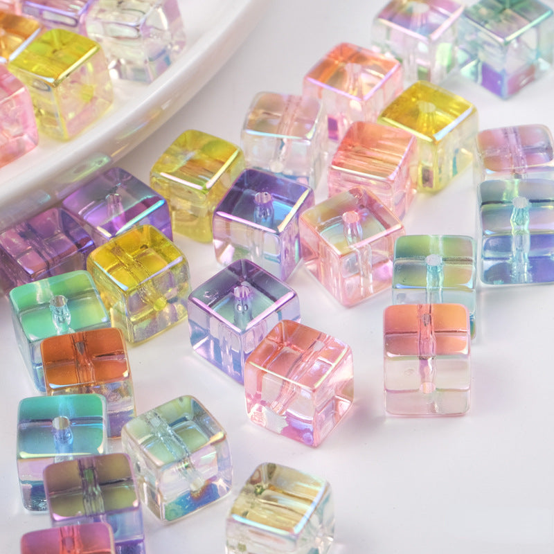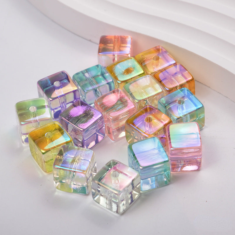 Add a pop of color with these transparent square acrylic beads. Perfect for DIY crafts, mobile phone chains, and bracelets.