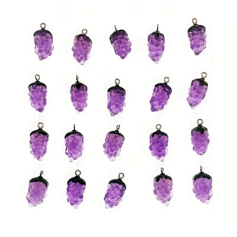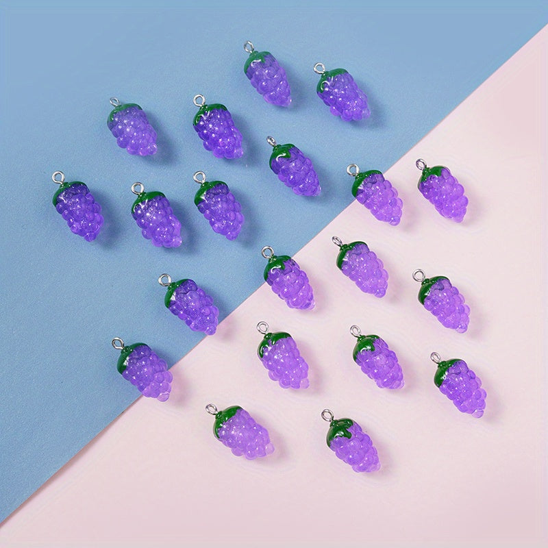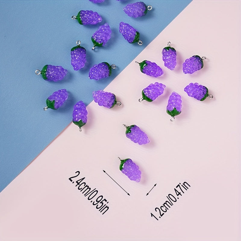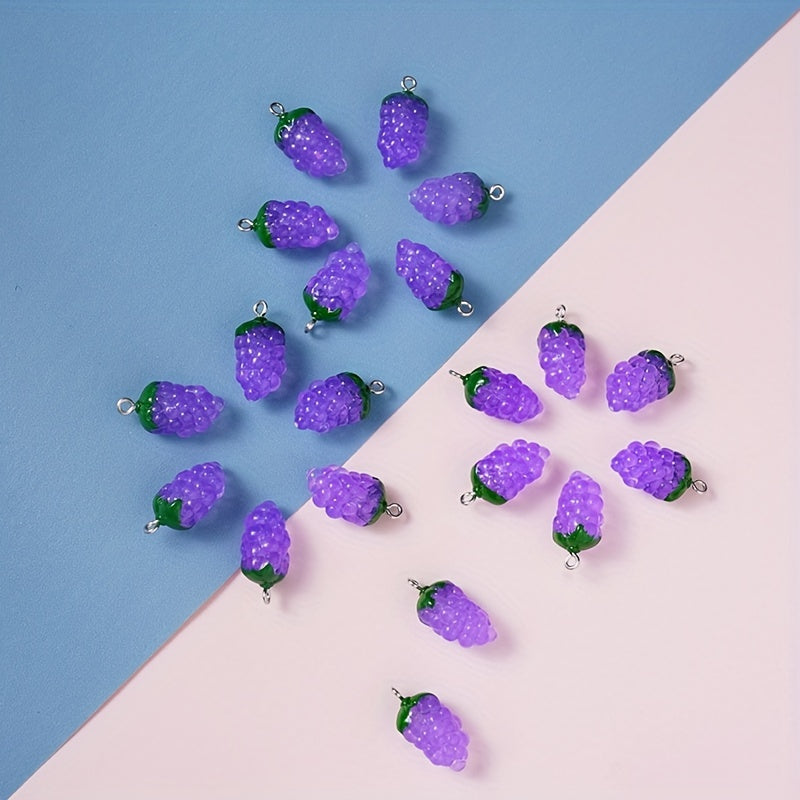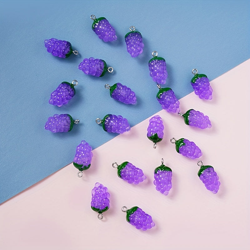 This pack contains 20 purple grape beads made from resin, perfect for creating your own unique jewelry pieces. Use them for necklaces, earrings, phone chains, keychains, and more.