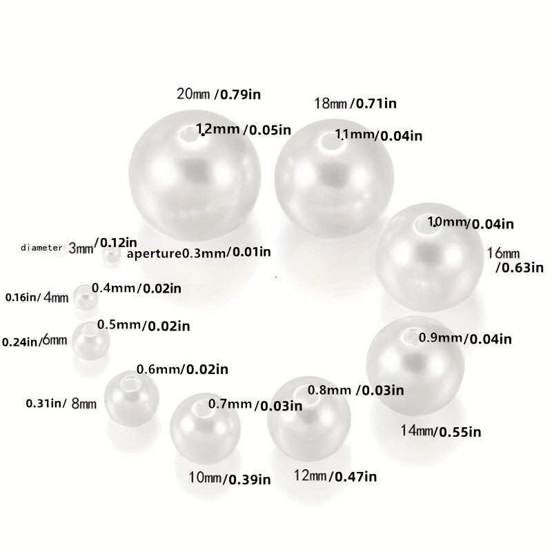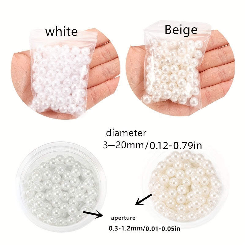• 200pcs beige pearl beads in sizes ranging from 3mm to 20mm