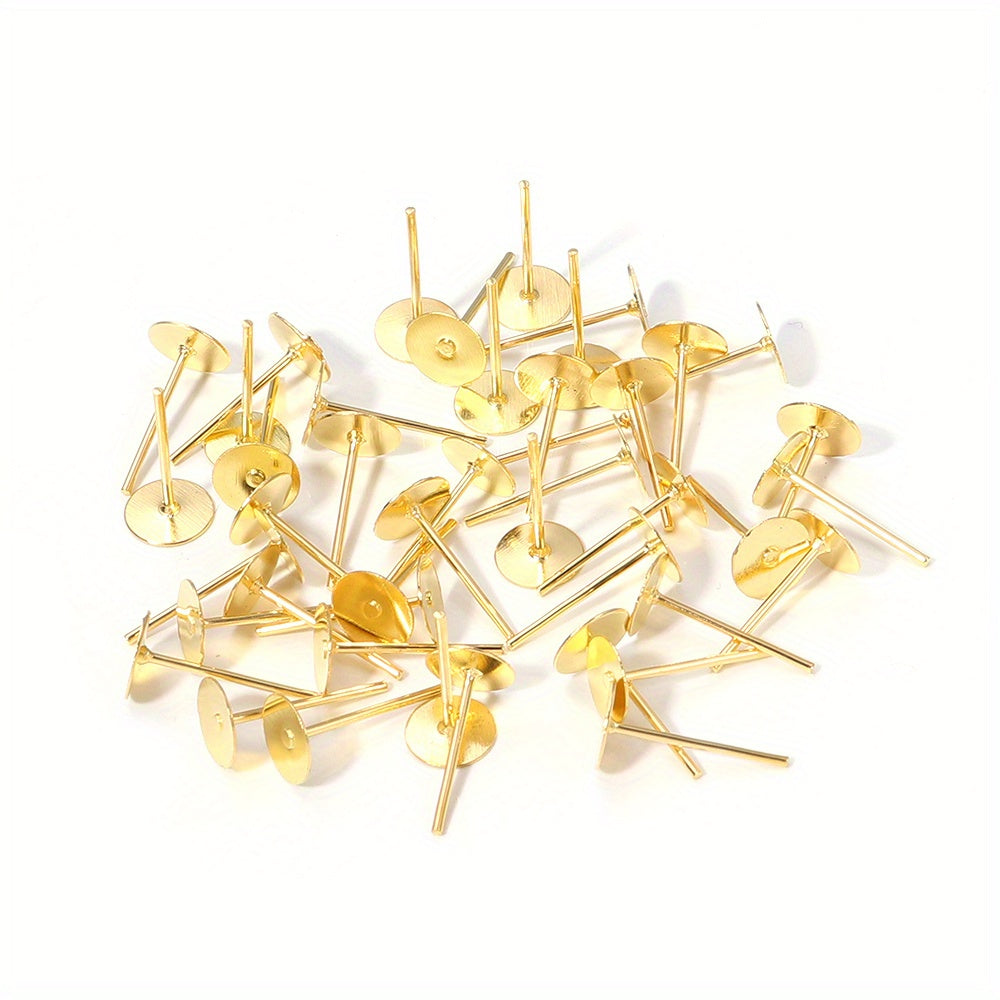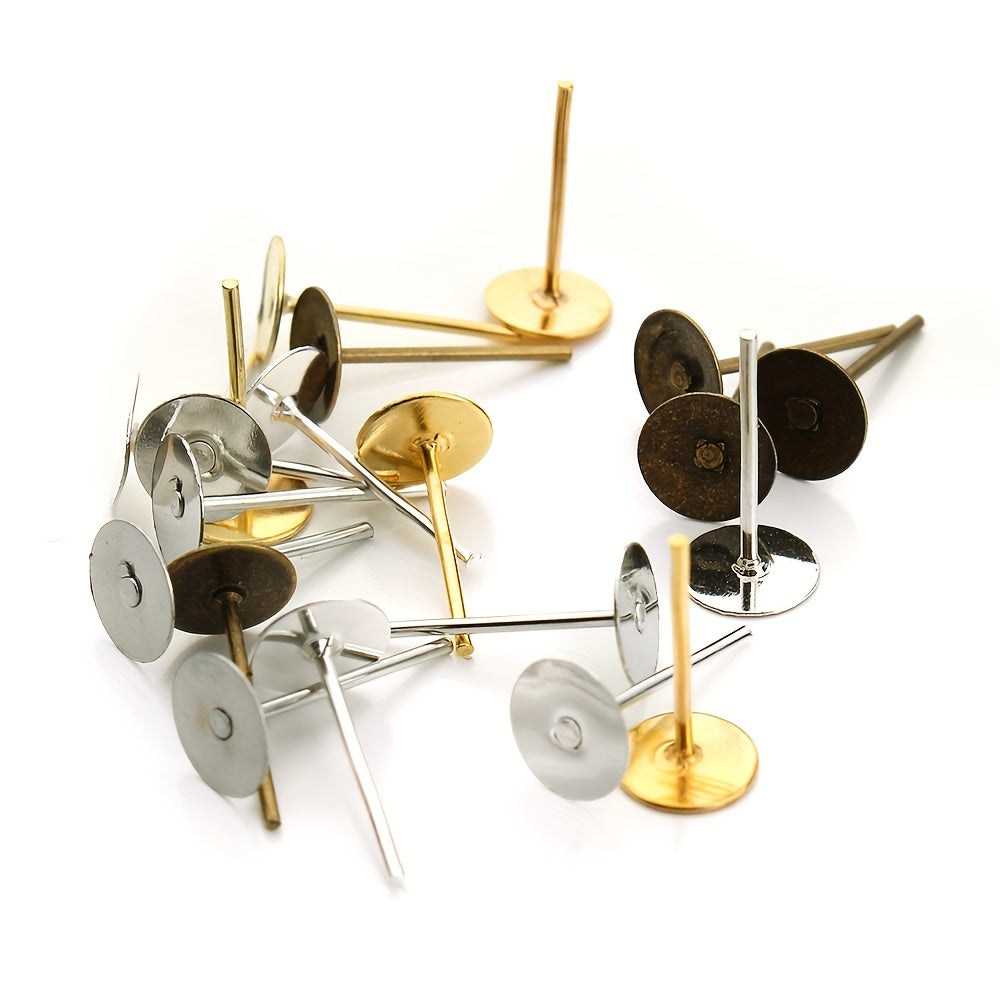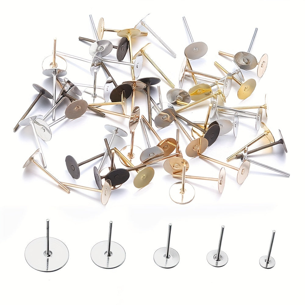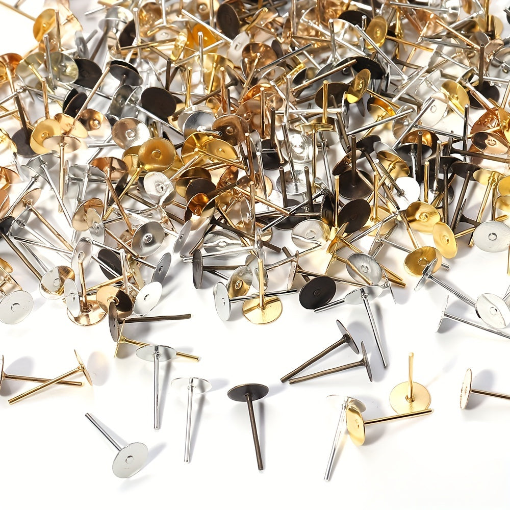 Enhance your earring collection with this set of 200 golden and silvery iron ear studs. Perfect for DIY earring making projects or as replacement pieces.