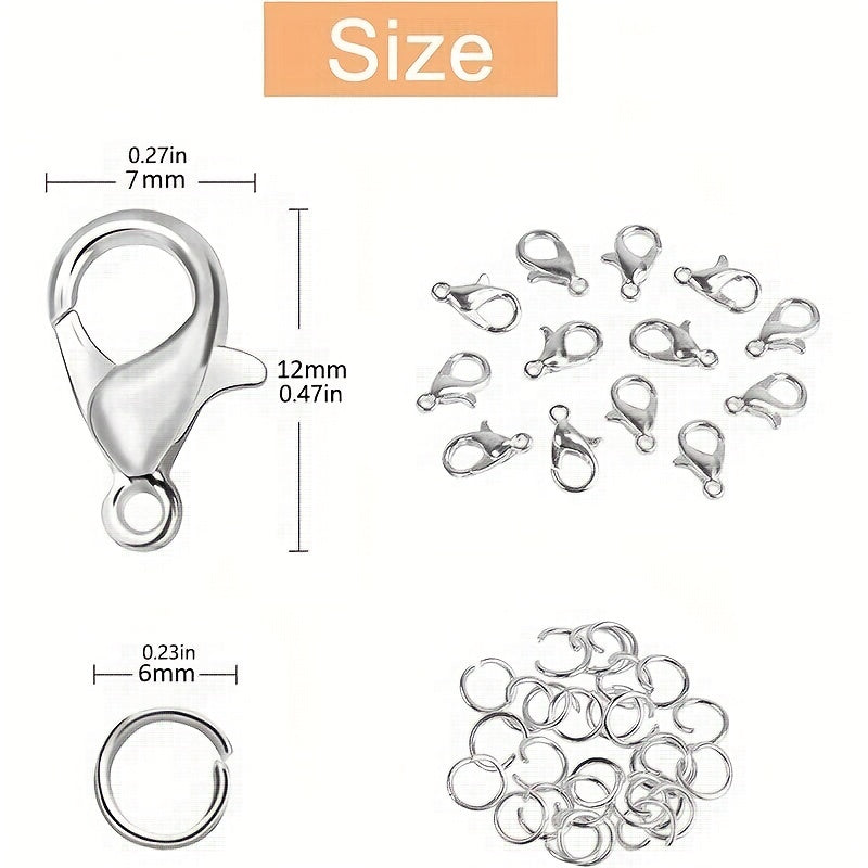 This kit includes 200 lobster claw clasps with open jump rings for making DIY necklaces, bracelets and other jewelry items. Ideal for crafters and jewelry enthusiasts.