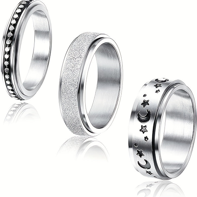 This spinner ring is made of high-quality 201 stainless steel and features elegant moon, sun, star, and Celtic designs. Perfect for women and men who love fidget rings.