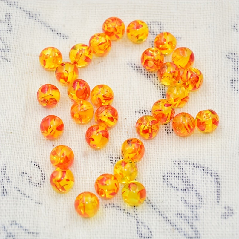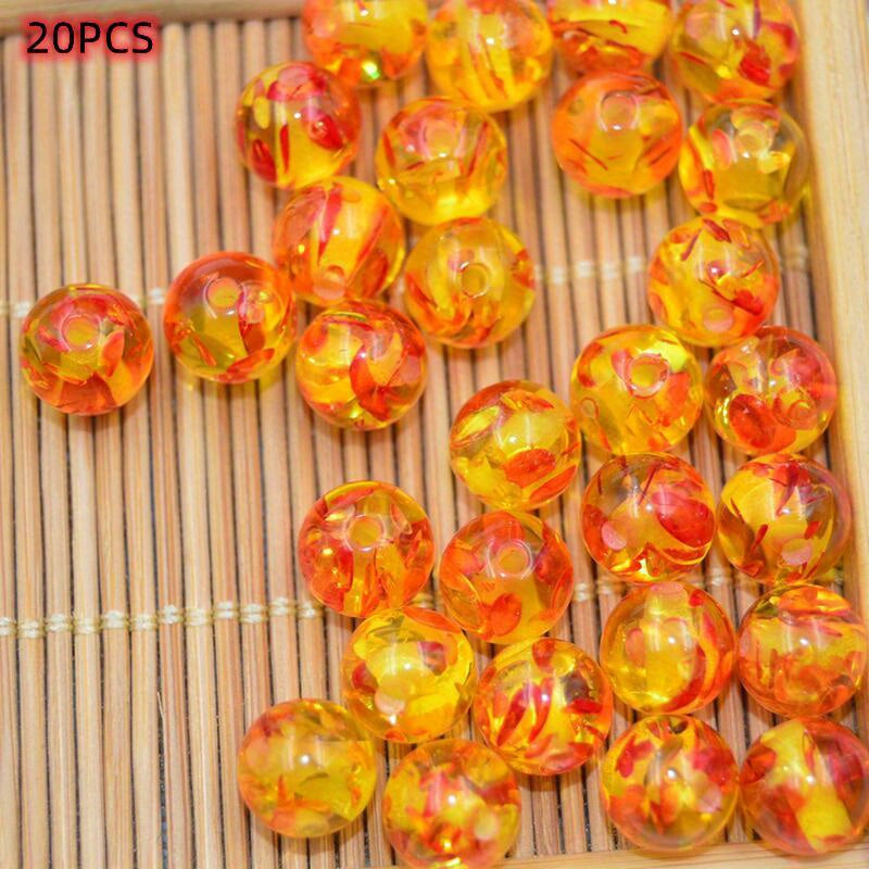 20pcs 10mm Amber Flower Red Dot Round Loose Beads for Jewelry Making