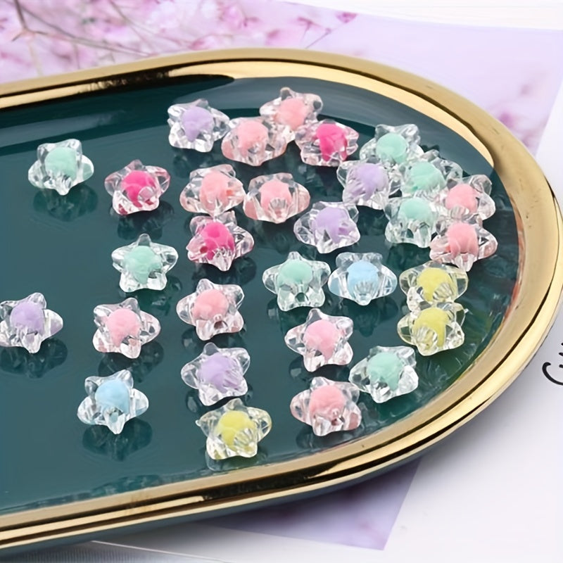 Add a touch of sparkle to your bracelet, necklace, mobile phone chain, or key chain with these transparent acrylic five-pointed star inner beads. Great for crafting unique and personalized jewelry accessories.