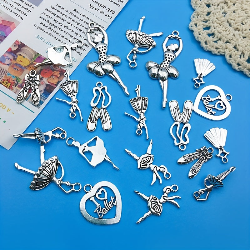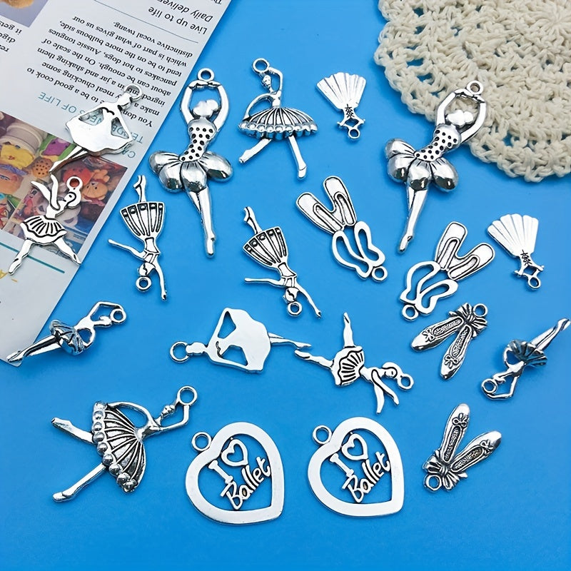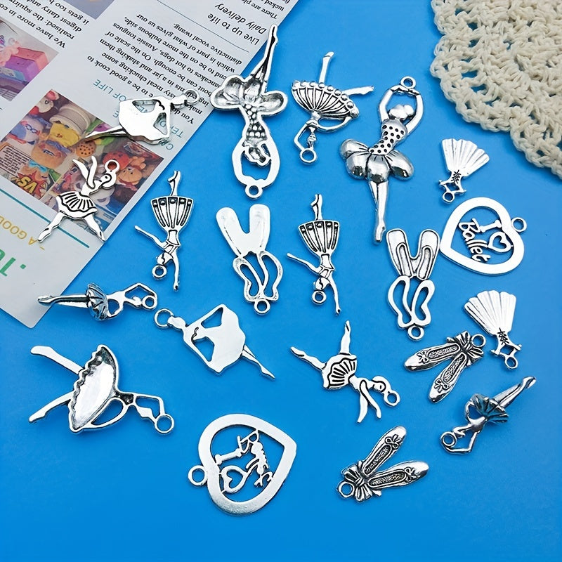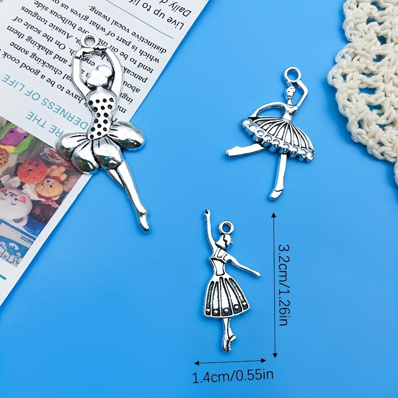 Enhance your jewelry-making projects with this set of 20 antique silvery ballerina girl pendants. Perfect for necklaces, bracelets, earrings, and more.