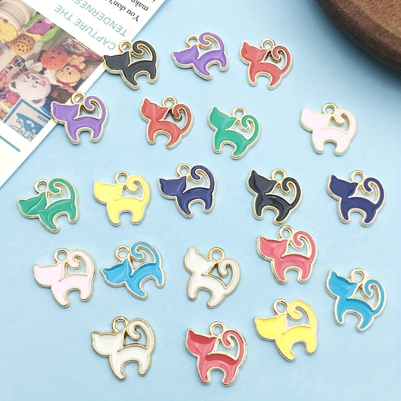 20pcs Colorful Enamel Cat Alloy Pendant for Jewelry Making