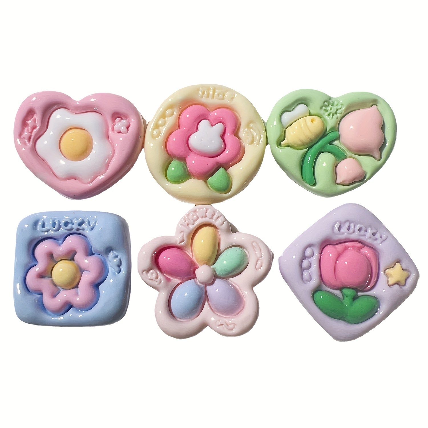 20pcs Colorful Flower Resin Charms DIY Hair Clips Phone Cases Embellishments